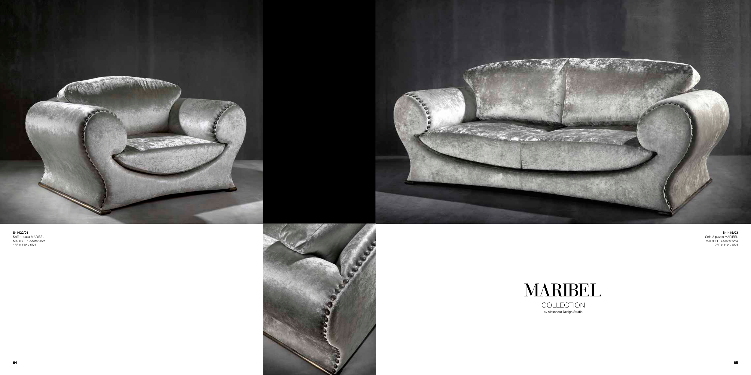 S-1415/03 Sofa 3 plazas MARIBEL MARIBEL 3-seater sofa 250 x 112 x 95H MARIBEL by Alexandra Design Studio S-1420/01 Sofá 1 plaza MARIBEL MARIBEL 1-seater sofa 156 x 112 x 95H 65 64