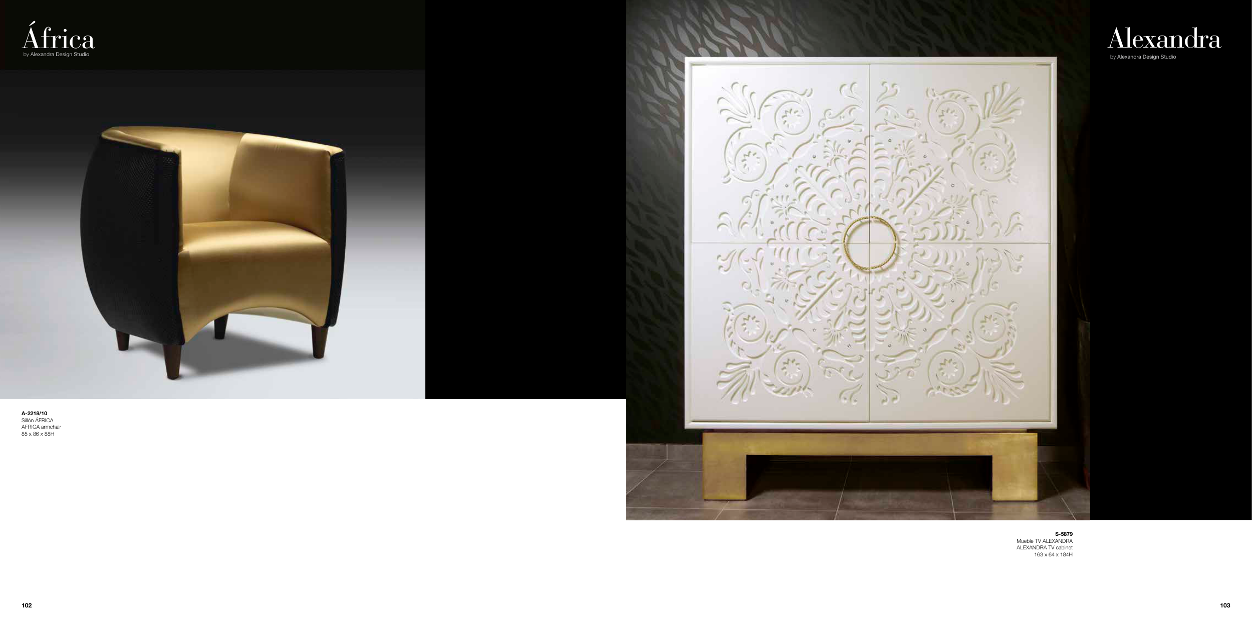 S-5879 Mueble TV ALEXANDRA ALEXANDRA TV cabinet 163 x 64 x 184H Alexandra by Alexandra Design Studio A-2218/10 Sillón ÁFRICA AFRICA armchair 85 x 86 x 88H África by Alexandra Design Studio 103 102