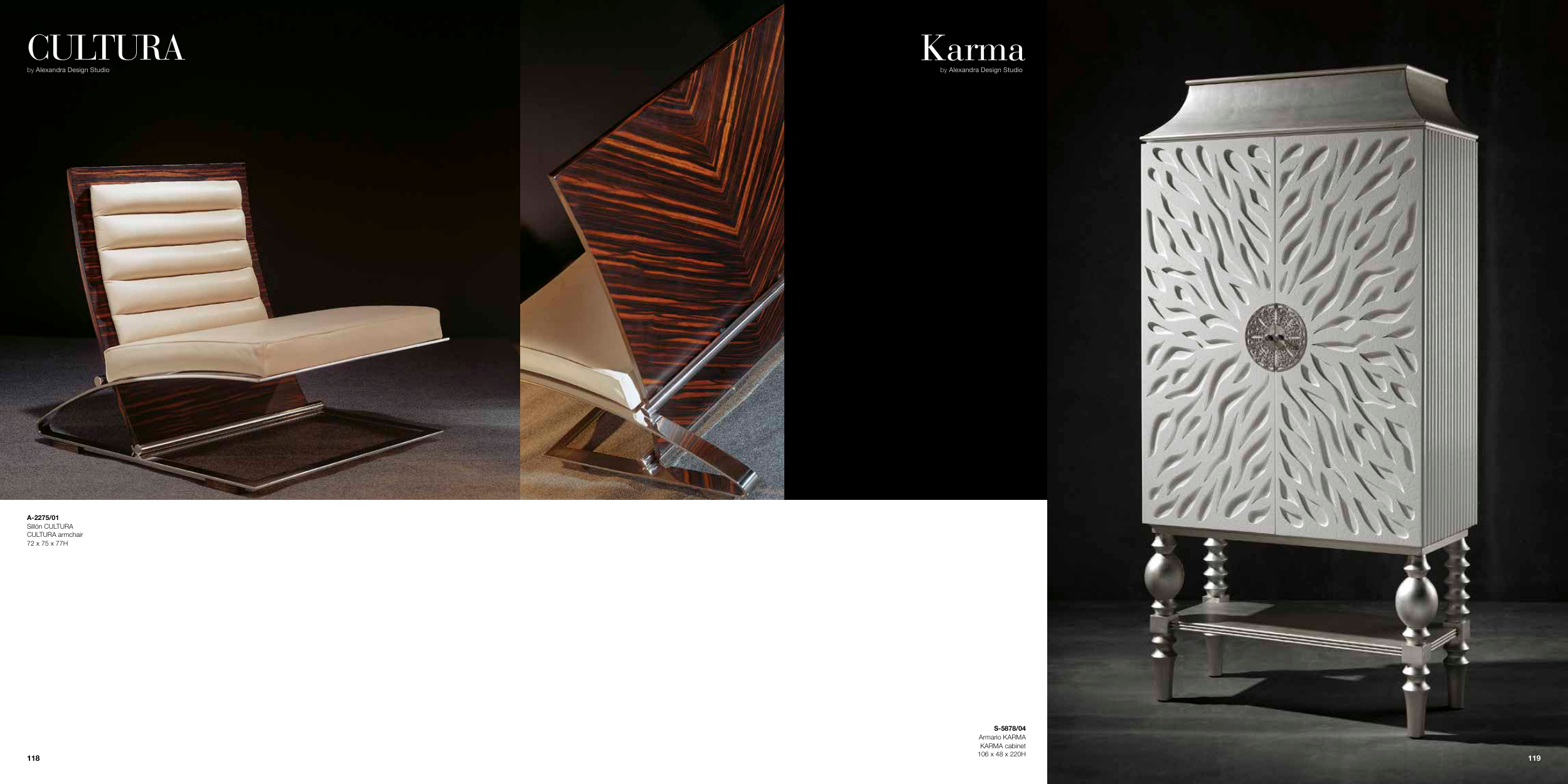 S-5878/04 Armario KARMA KARMA cabinet 106 x 48 x 220H by Alexandra Design Studio Karma A-2275/01 Sillón CULTURA CULTURA armchair 72 x 75 x 77H CULTURA by Alexandra Design Studio 119 118