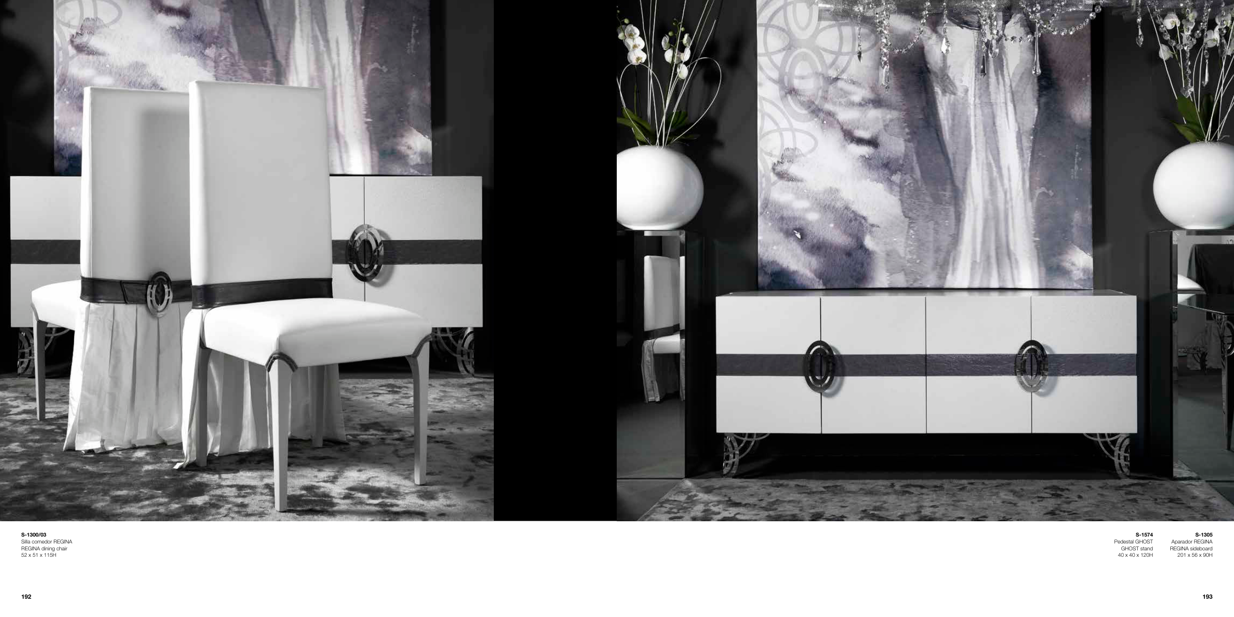 S-1300/03 Silla comedor REGINA REGINA dining chair 52 x 51 x 115H S-1574 Pedestal GHOST GHOST stand 40 x 40 x 120H S-1305 Aparador REGINA REGINA sideboard 201 x 56 x 90H 193 192