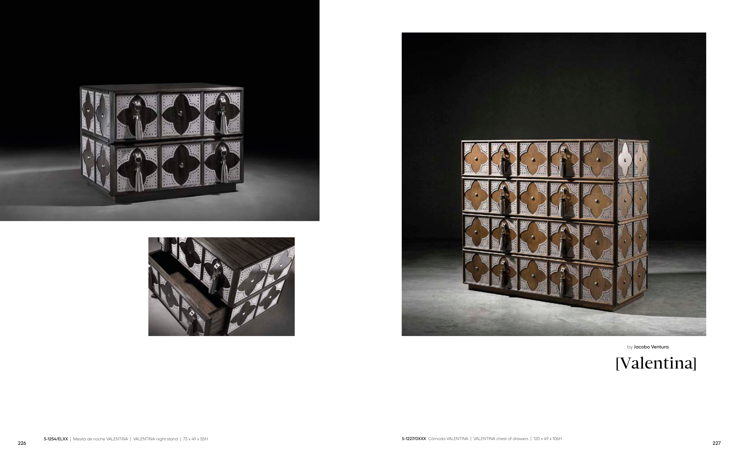 S-1227/DXXX Cómoda VALENTINA | VALENTINA chest of drawers | 120 x 49 x 106H S-1254/ELXX | Mesita de noche VALENTINA | VALENTINA night stand | 73 x 49 x 55H [Valentina] by Jacobo Ventura 226 227