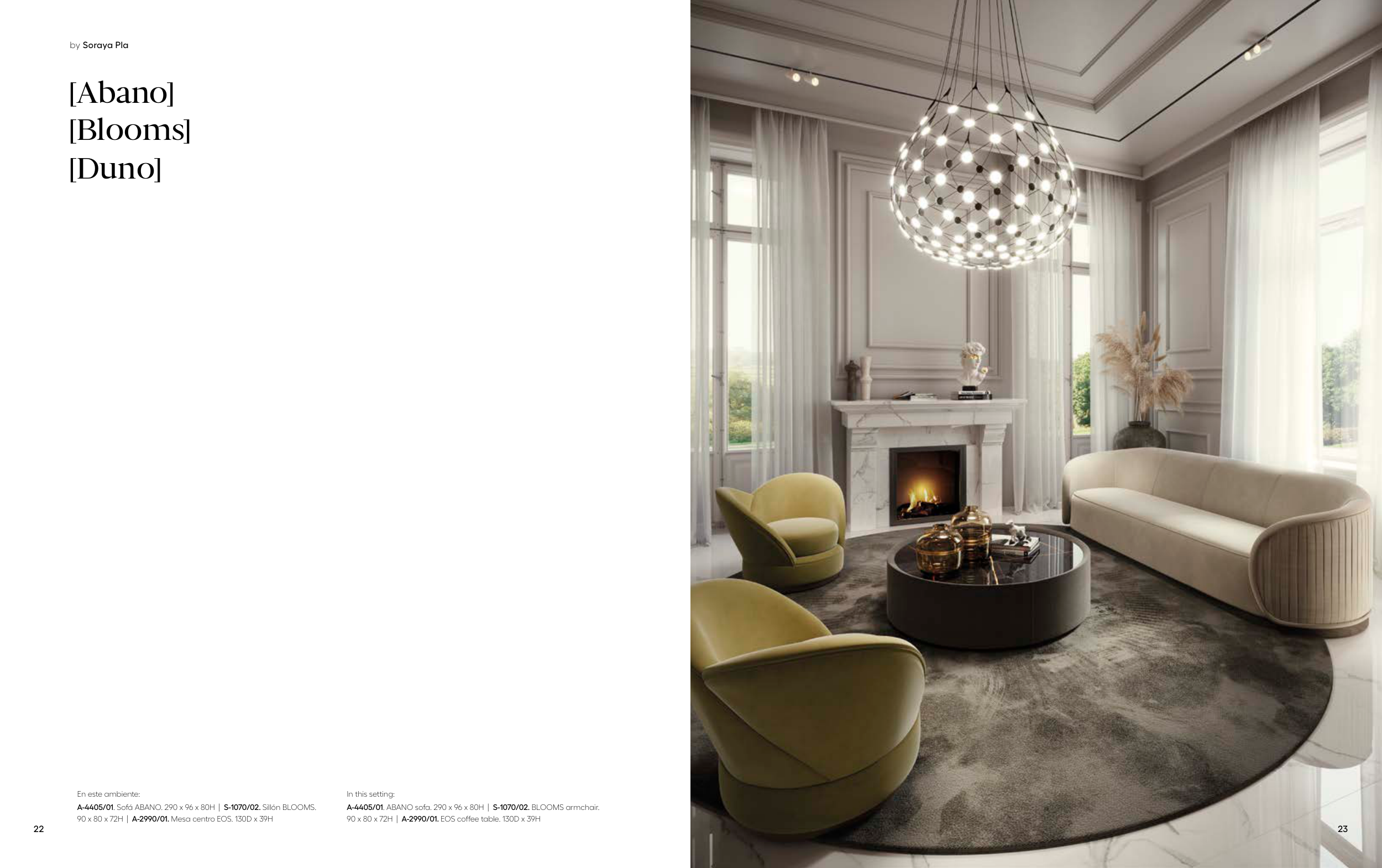 A-4405/01. Sofá ABANO. 290 x 96 x 80H | S-1070/02. Sillón BLOOMS.