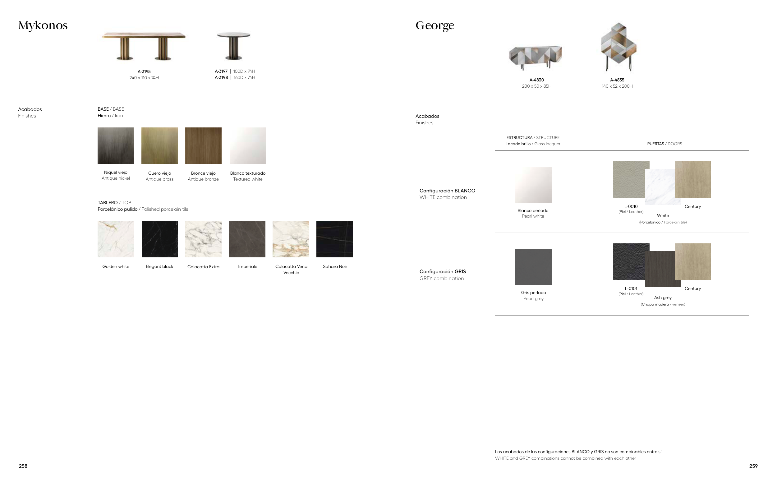 Los acabados de las configuraciones BLANCO y GRIS no son combinables entre sí
