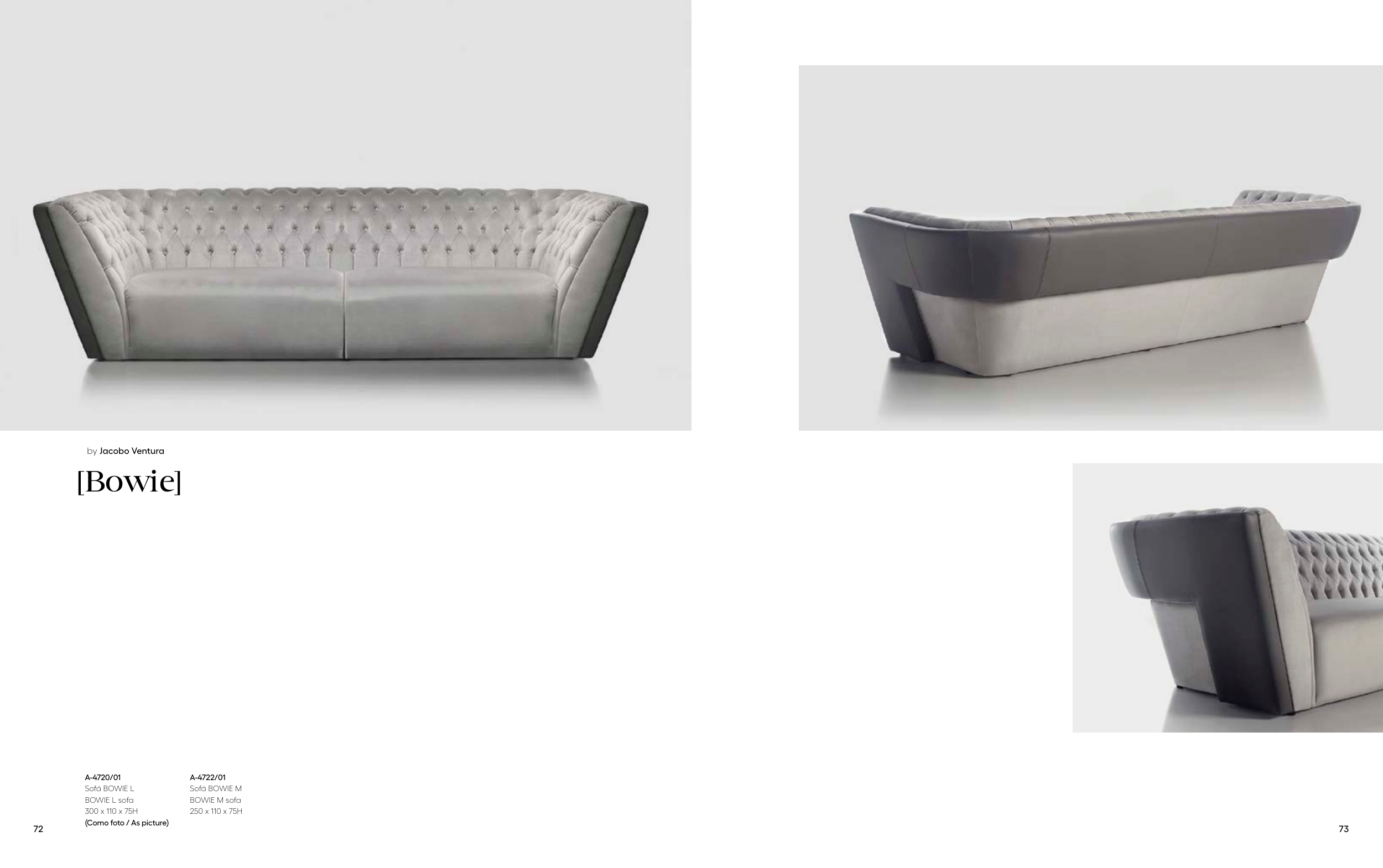 A-4720/01 Sofá BOWIE L BOWIE L sofa 300 x 110 x 75H (Como foto / As picture) A-4722/01 Sofá BOWIE M BOWIE M sofa 250 x 110 x 75H [Bowie] by Jacobo Ventura 72 73
