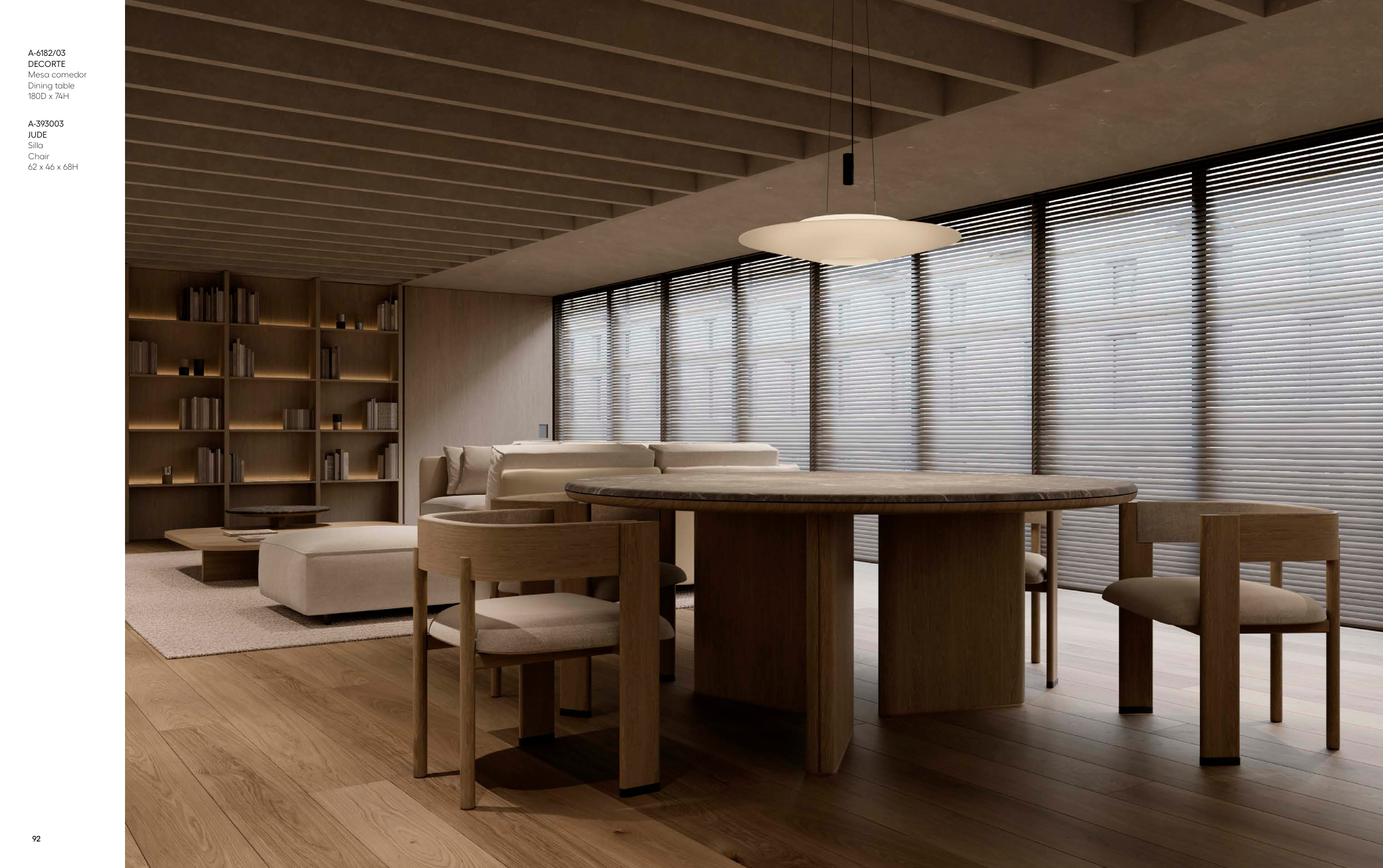 93 THE BEGINNING OF A NEW DESIGN ERA 92 ALEXANDRA FORWARDS A-393003 JUDE Silla Chair 62 x 46 x 68H A-6182/03 DECORTE Mesa comedor Dining table 180D x 74H