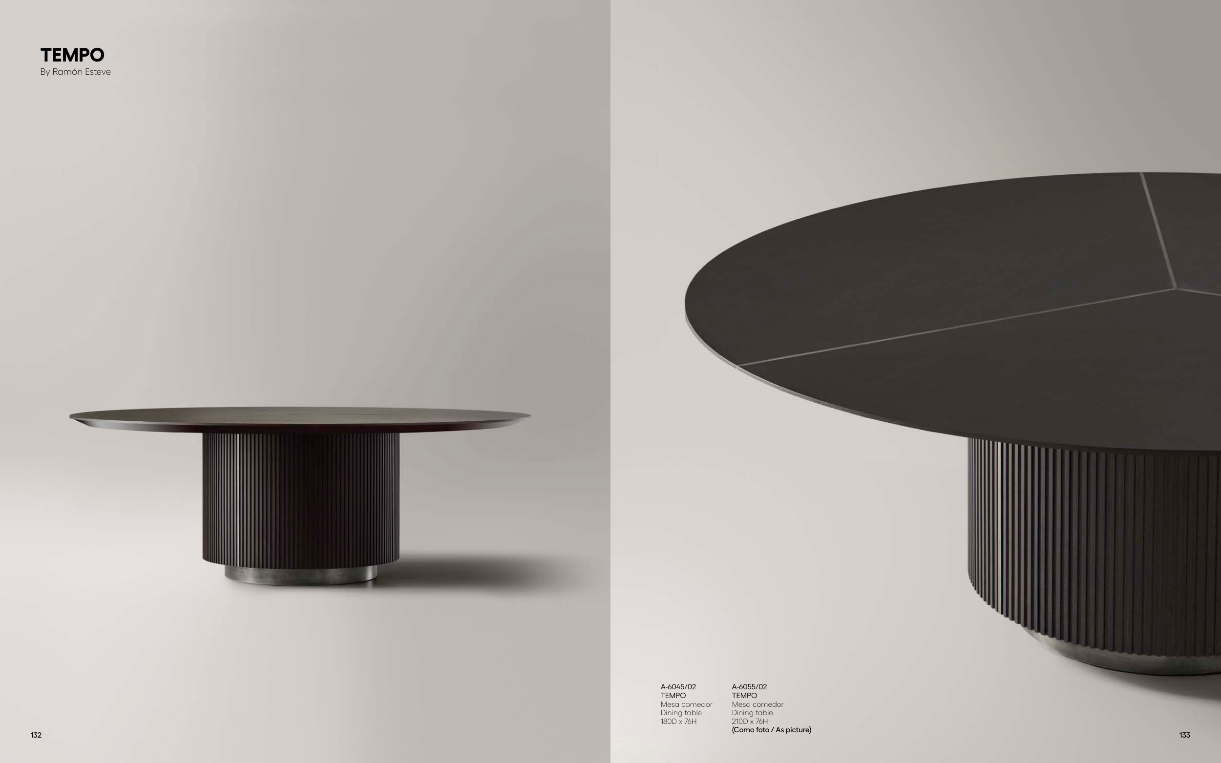 A-6045/02 TEMPO Mesa comedor Dining table 180D x 76H A-6055/02 TEMPO Mesa comedor Dining table 210D x 76H (Como foto / As picture) TEMPO By Ramón Esteve 132 133