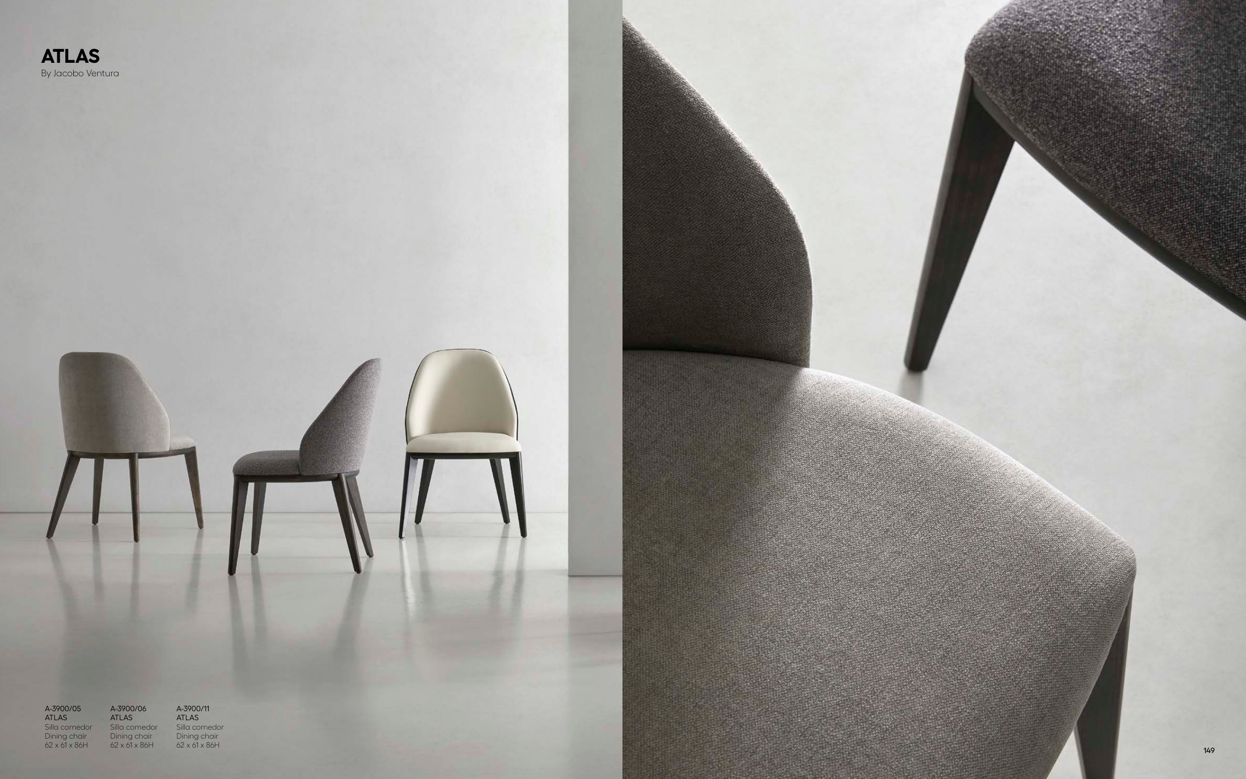 A-3900/05 ATLAS Silla comedor Dining chair 62 x 61 x 86H A-3900/06 ATLAS Silla comedor Dining chair 62 x 61 x 86H A-3900/11 ATLAS Silla comedor Dining chair 62 x 61 x 86H ATLAS By Jacobo Ventura 149