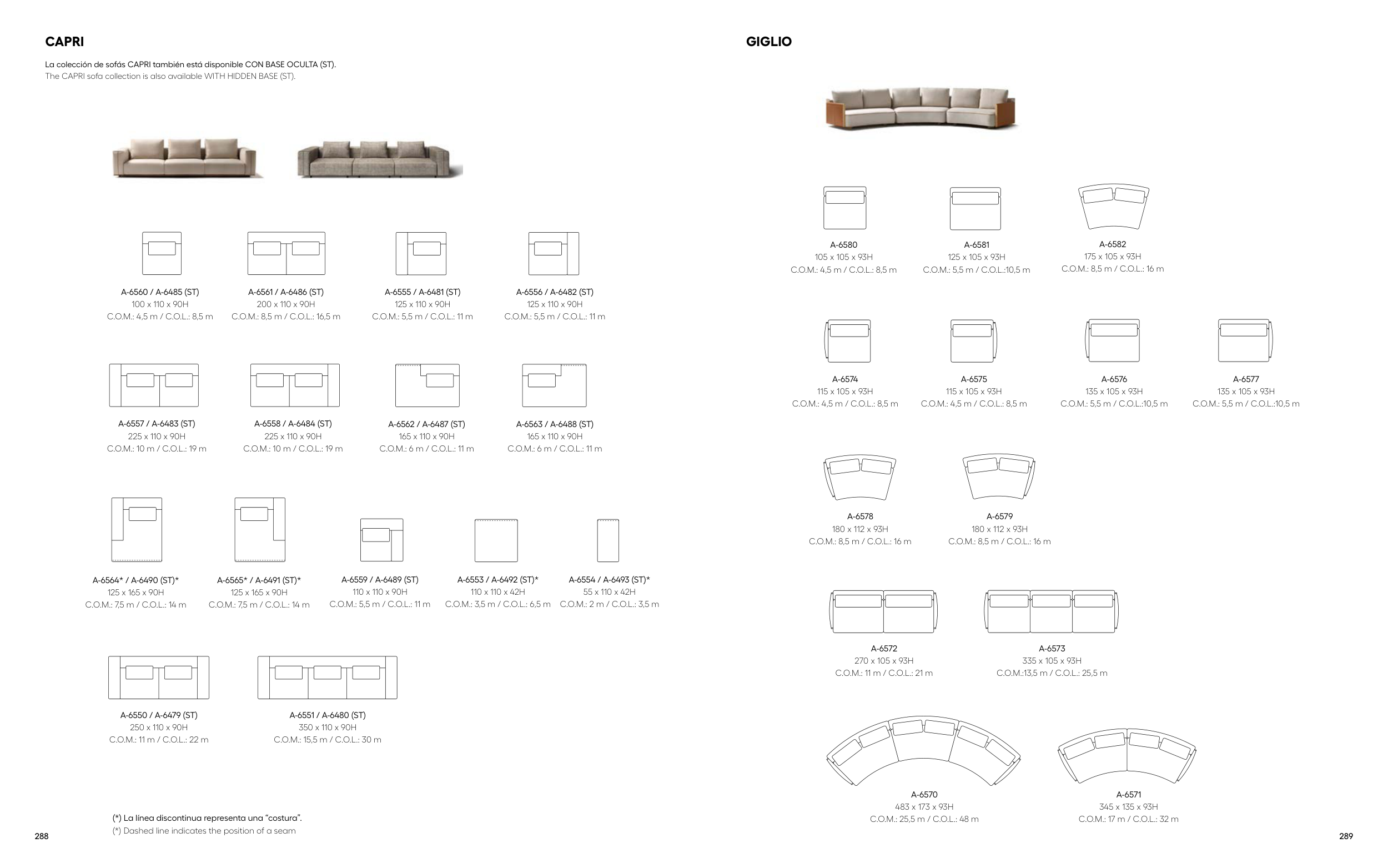 La colección de sofás CAPRI también está disponible CON BASE OCULTA (ST).