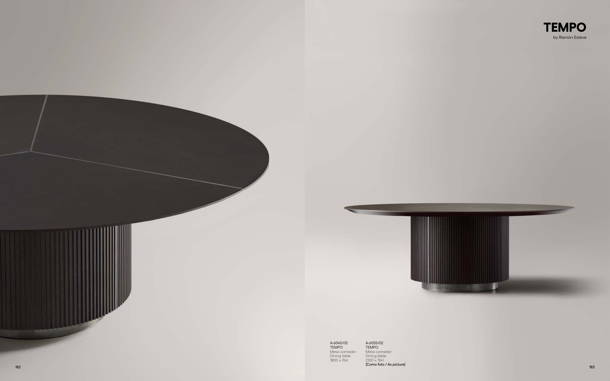 A-6045/02 TEMPO Mesa comedor Dining table 180D x 76H A-6055/02 TEMPO Mesa comedor Dining table 210D x 76H (Como foto / As picture) TEMPO by Ramón Esteve 182 183