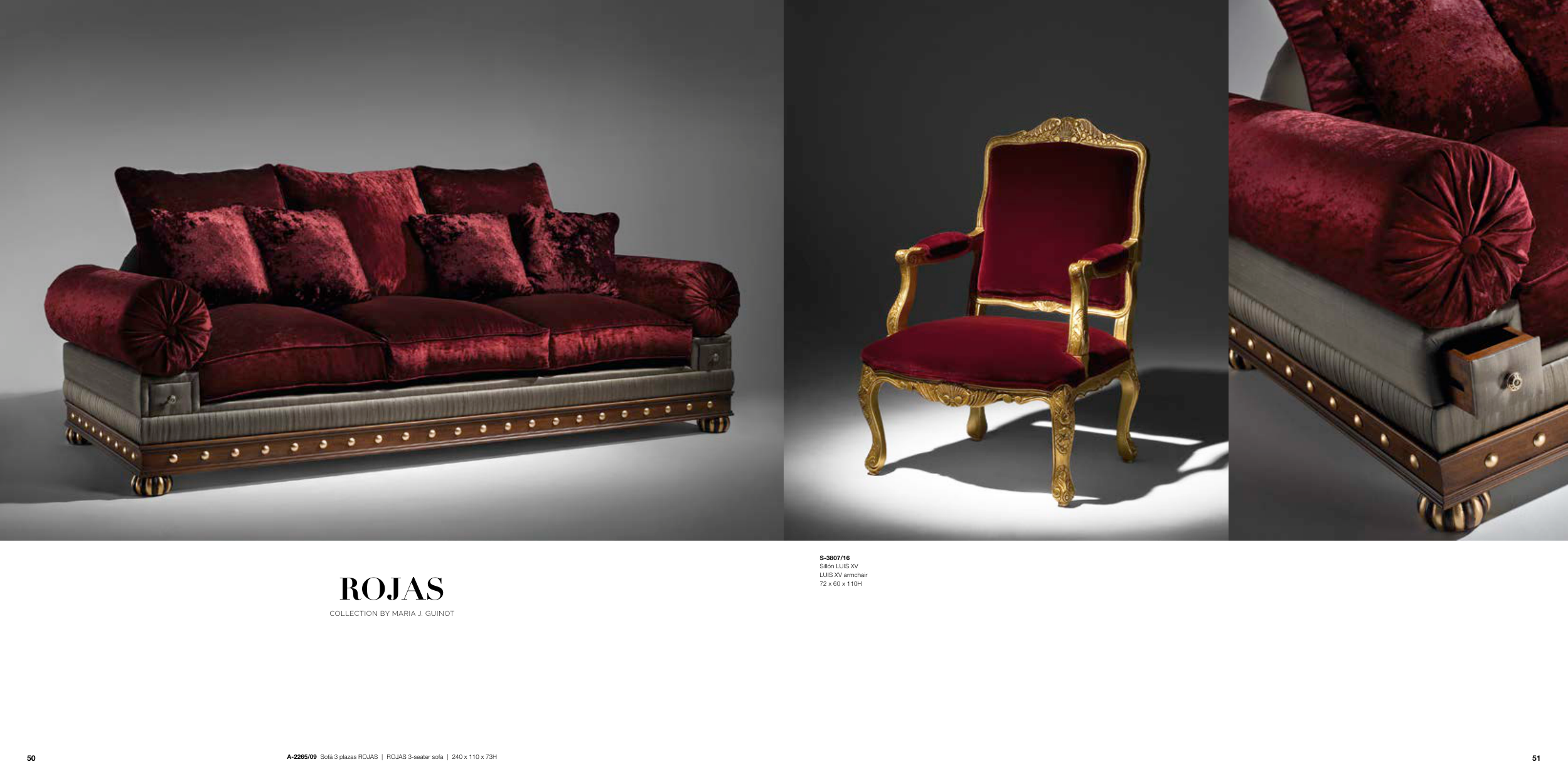 ROJAS COLLECTION BY MARIA J. GUINOT S-3807/16 Sillón LUIS XV LUIS XV armchair 72 x 60 x 110H A-2265/09 Sofá 3 plazas ROJAS | ROJAS 3-seater sofa | 240 x 110 x 73H 51 50