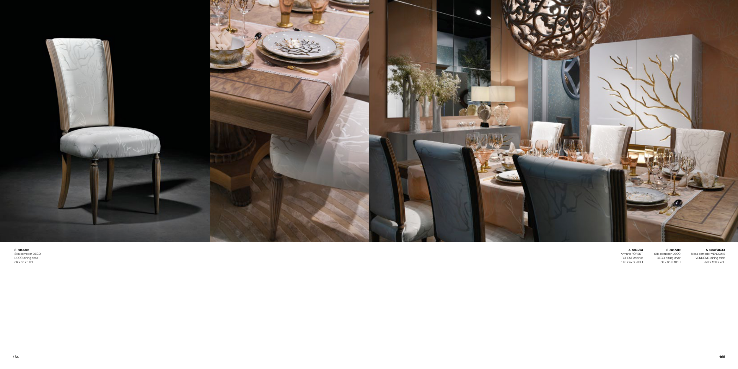 S-5857/09 Silla comedor DECO DECO dining chair 56 x 65 x 106H A-4760/OCXX Mesa comedor VENDOME VENDOME dining table 250 x 120 x 75H A-4860/03 Armario FOREST FOREST cabinet 140 x 57 x 200H S-5857/09 Silla comedor DECO DECO dining chair 56 x 65 x 106H 165 164