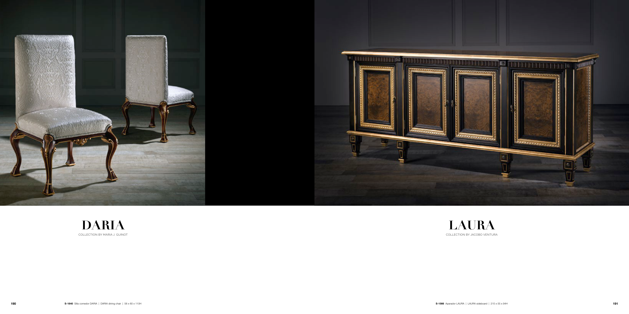 S-1566 Aparador LAURA | LAURA sideboard | 215 x 55 x 94H S-1840 Silla comedor DARIA | DARIA dining chair | 58 x 60 x 110H DARIA COLLECTION BY MARIA J. GUINOT LAURA COLLECTION BY JACOBO VENTURA 191 190