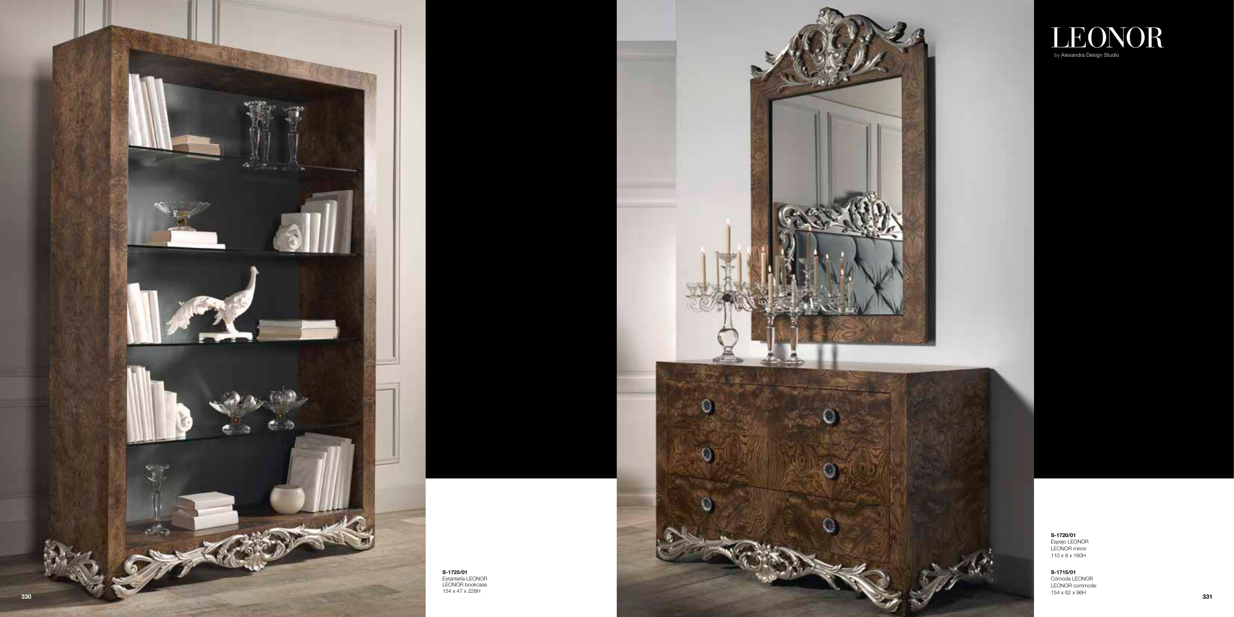 by Alexandra Design Studio LEONOR S-1715/01 Cómoda LEONOR LEONOR commode 154 x 62 x 96H S-1720/01 Espejo LEONOR LEONOR mirror 110 x 8 x 160H S-1725/01 Estantería LEONOR LEONOR bookcase 154 x 47 x 228H 331 330