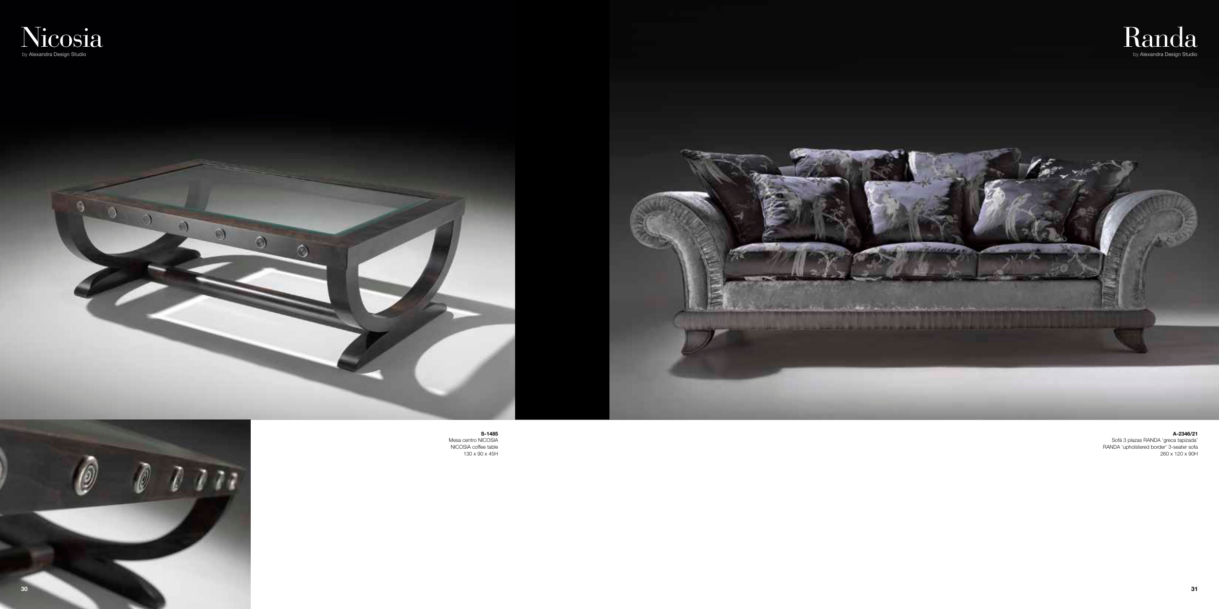 Randa by Alexandra Design Studio A-2346/21 Sofá 3 plazas RANDA ‘greca tapizada’ RANDA ‘upholstered border’ 3-seater sofa 260 x 120 x 90H Nicosia by Alexandra Design Studio S-1485 Mesa centro NICOSIA NICOSIA coffee table 130 x 90 x 45H 31 30
