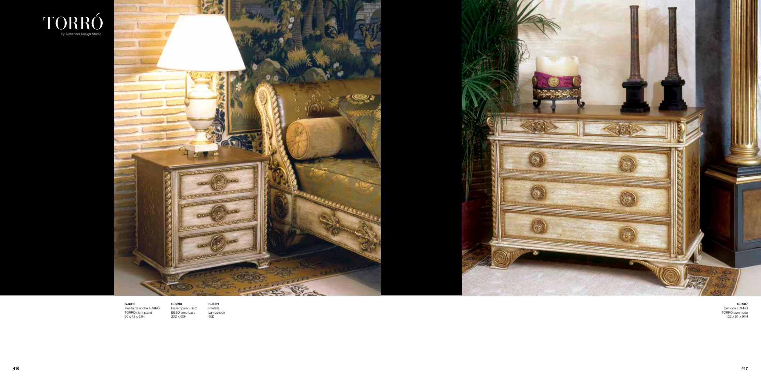 by Alexandra Design Studio TORRÓ S-3987 Cómoda TORRÓ TORRO commode 122 x 61 x 91H S-3986 Mesita de noche TORRÓ TORRO night stand 60 x 43 x 53H S-9031 Pantalla Lampshade 45D S-6893 Pie lámpara EGEO EGEO lamp base 20D x 50H 417 416