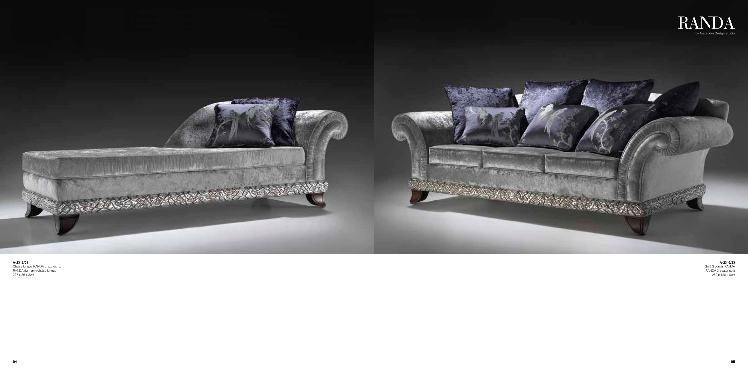 RANDA by Alexandra Design Studio A-2346/23 Sofá 3 plazas RANDA RANDA 3-seater sofa 260 x 120 x 90H A-2318/01 Chaise longue RANDA brazo dcho. RANDA right arm chaise longue 237 x 86 x 82H 95 94