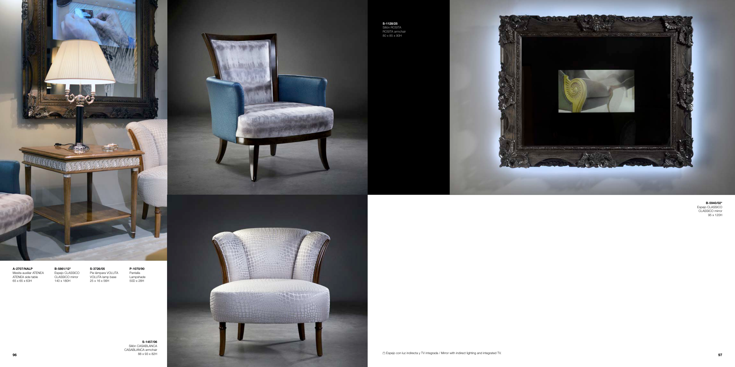 (*) Espejo con luz indirecta y TV integrada / Mirror with indirect lighting and integrated TV.