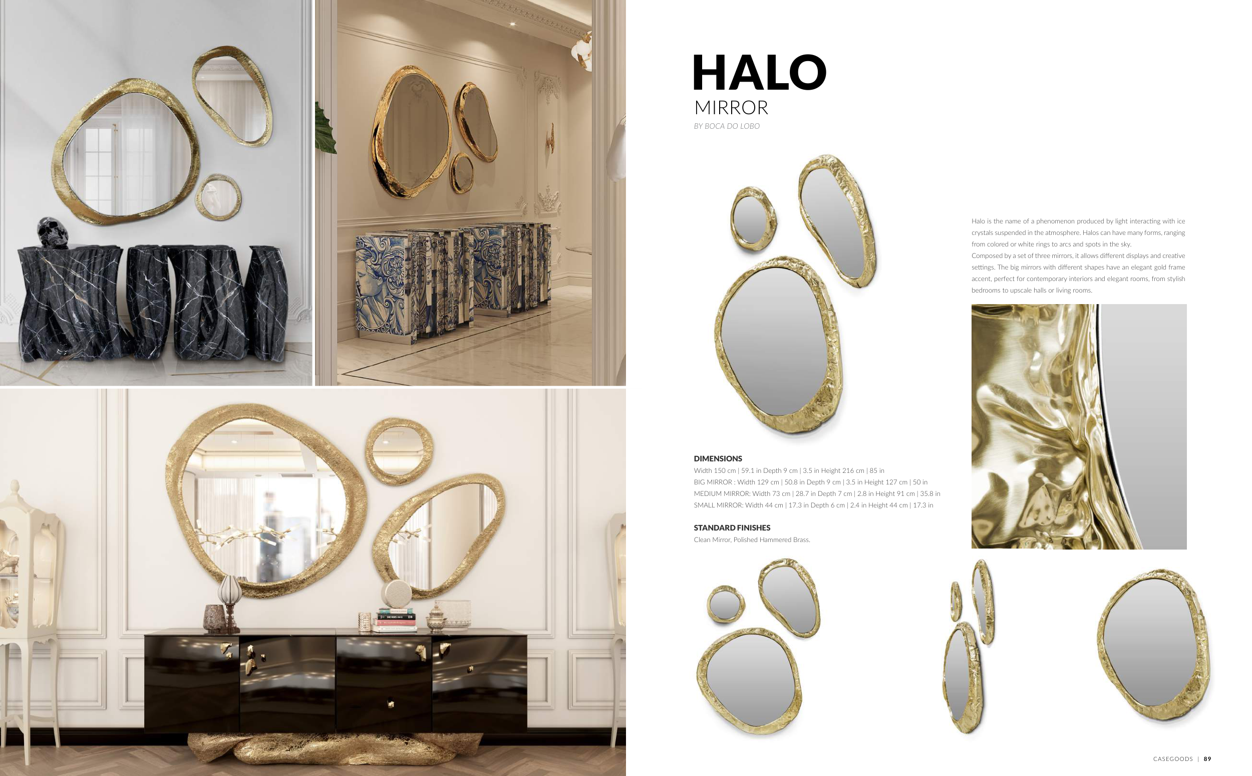 settings. The big mirrors with different shapes have an elegant gold frame