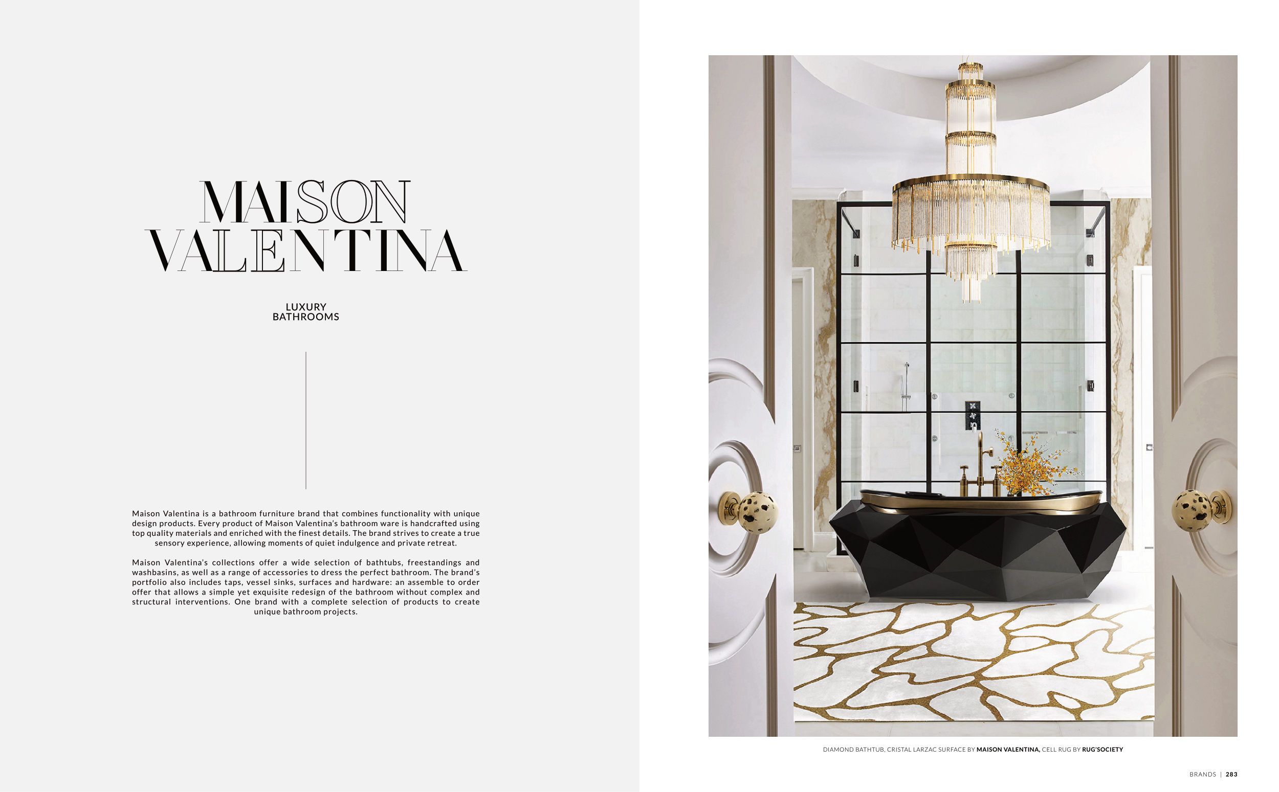 DIAMOND BATHTUB, CRISTAL LARZAC SURFACE BY MAISON VALENTINA, CELL RUG BY RUG’SOCIETY