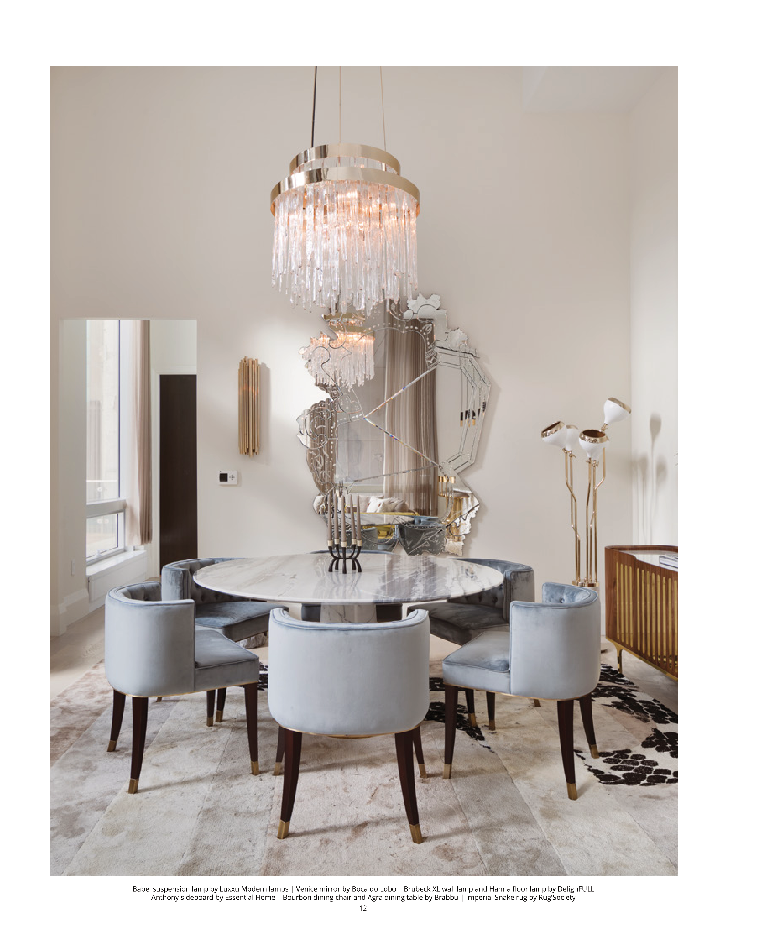 Babel suspension lamp by Luxxu Modern lamps | Venice mirror by Boca do Lobo | Brubeck XL wall lamp and Hanna floor lamp by DelighFULL