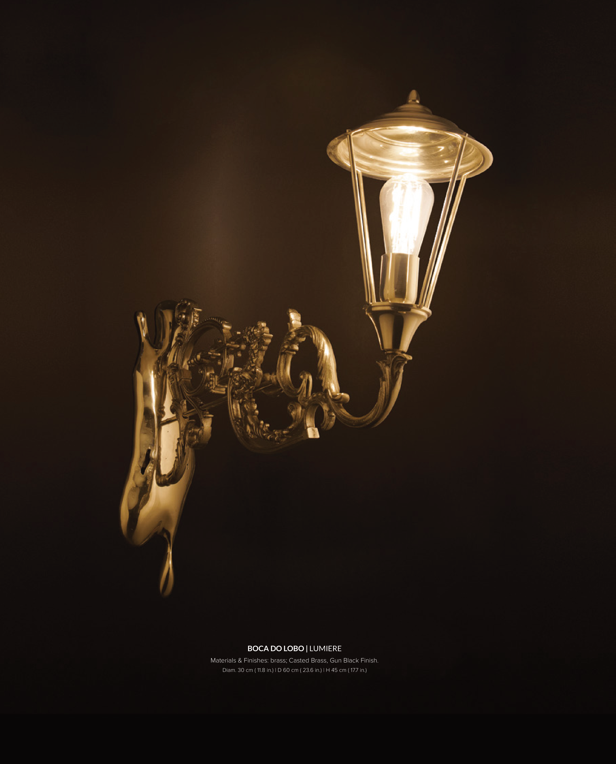 68 BOCA DO LOBO | LUMIERE Materials & Finishes: brass; Casted Brass, Gun Black Finish. Diam. 30 cm ( 11.8 in.) | D 60 cm ( 23.6 in.) | H 45 cm ( 17.7 in.)