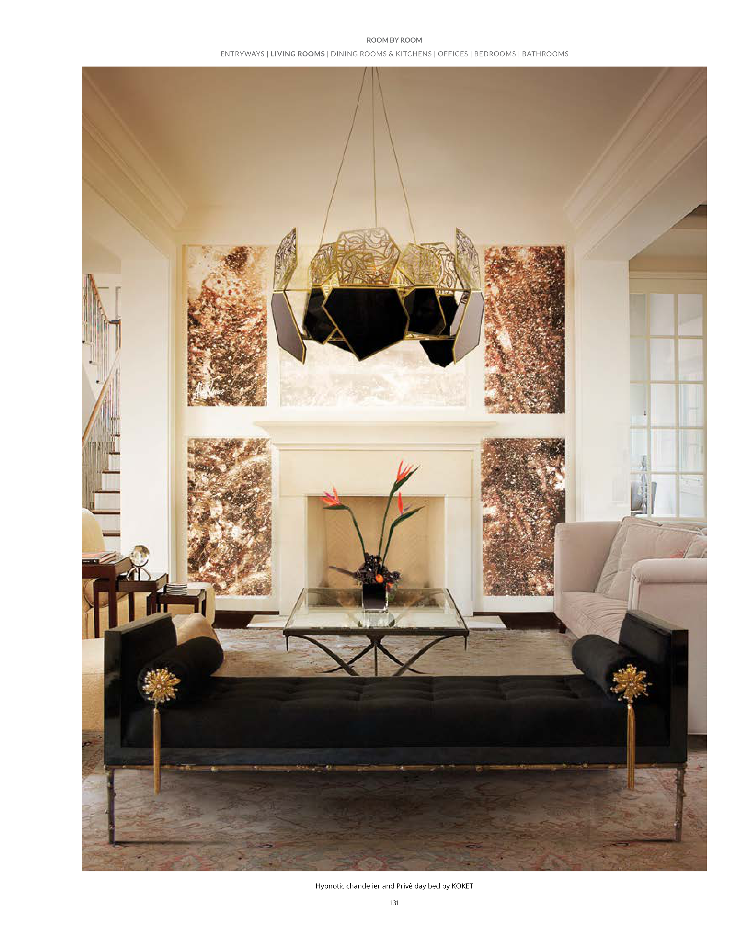 Hypnotic chandelier and Privê day bed by KOKET