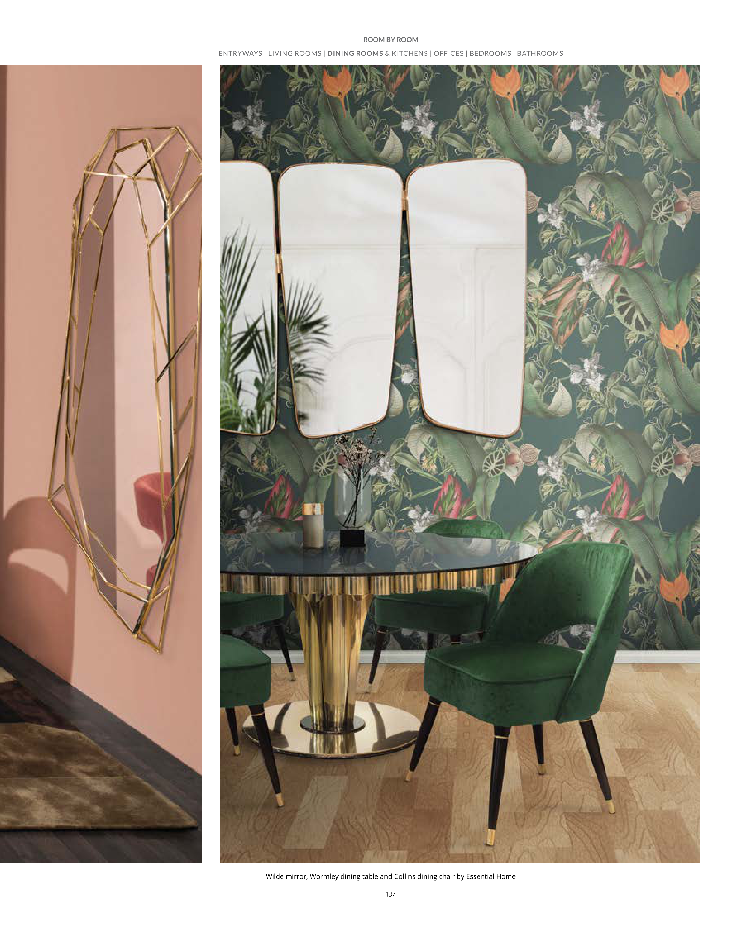 Wilde mirror, Wormley dining table and Collins dining chair by Essential Home