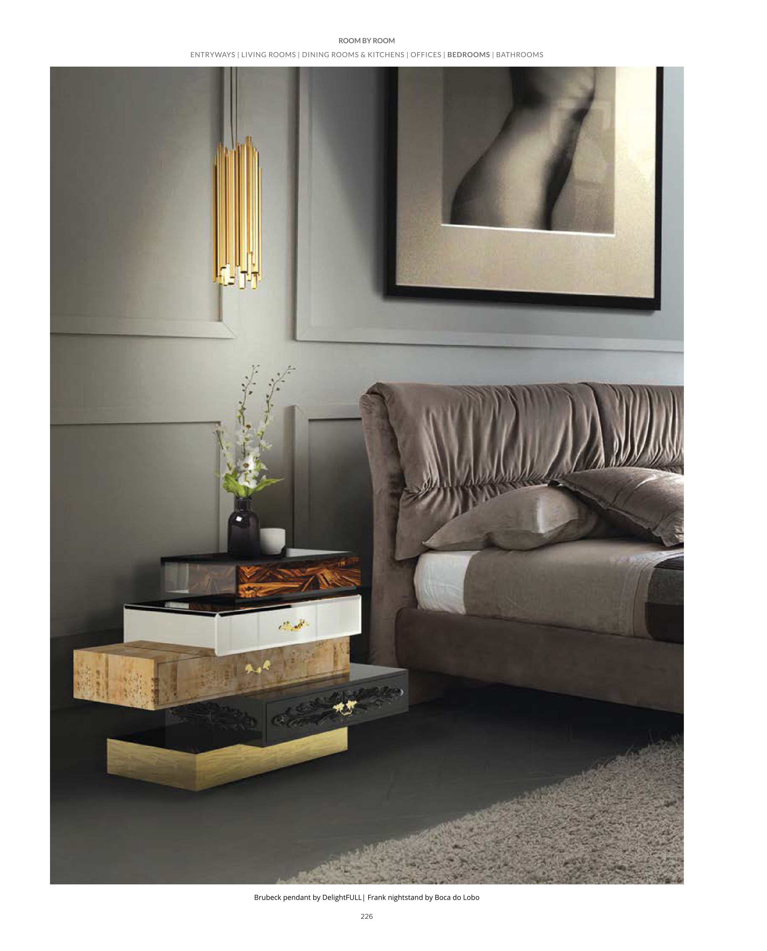 226 Brubeck pendant by DelightFULL| Frank nightstand by Boca do Lobo ENTRYWAYS | LIVING ROOMS | DINING ROOMS & KITCHENS | OFFICES | BEDROOMS | BATHROOMS ROOM BY ROOM
