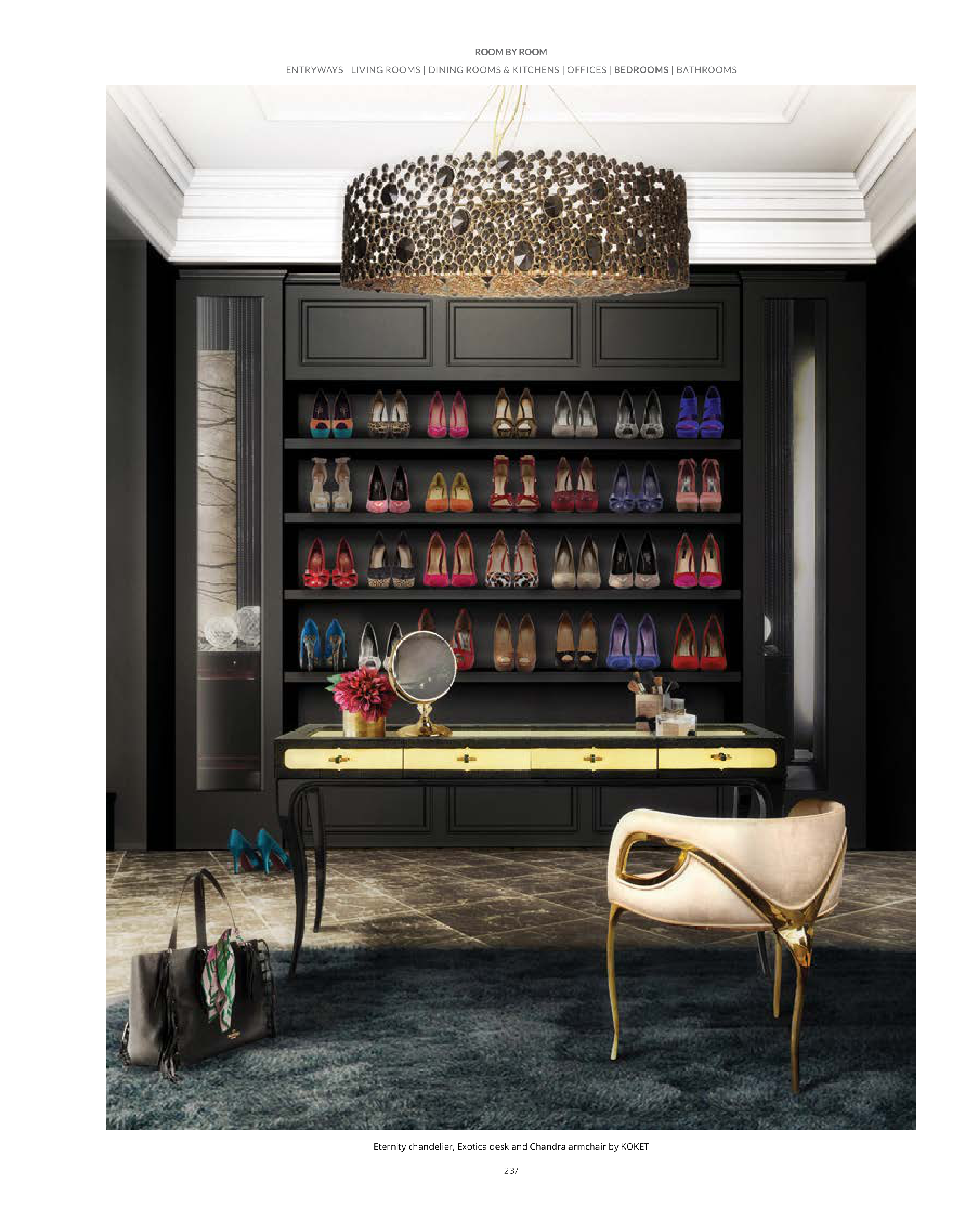 Eternity chandelier, Exotica desk and Chandra armchair by KOKET
