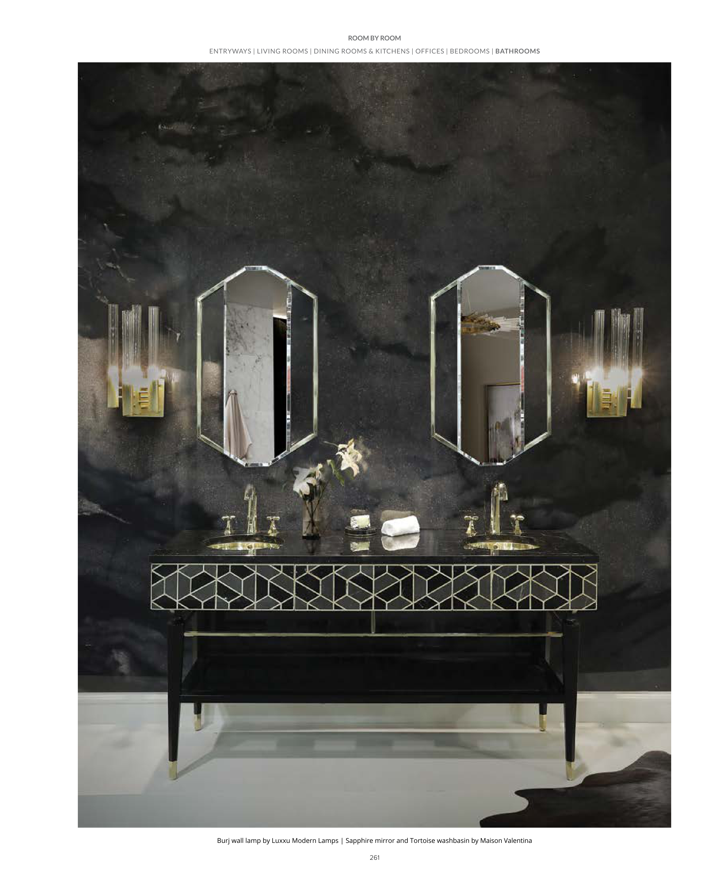 261 Burj wall lamp by Luxxu Modern Lamps | Sapphire mirror and Tortoise washbasin by Maison Valentina ENTRYWAYS | LIVING ROOMS | DINING ROOMS & KITCHENS | OFFICES | BEDROOMS | BATHROOMS ROOM BY ROOM