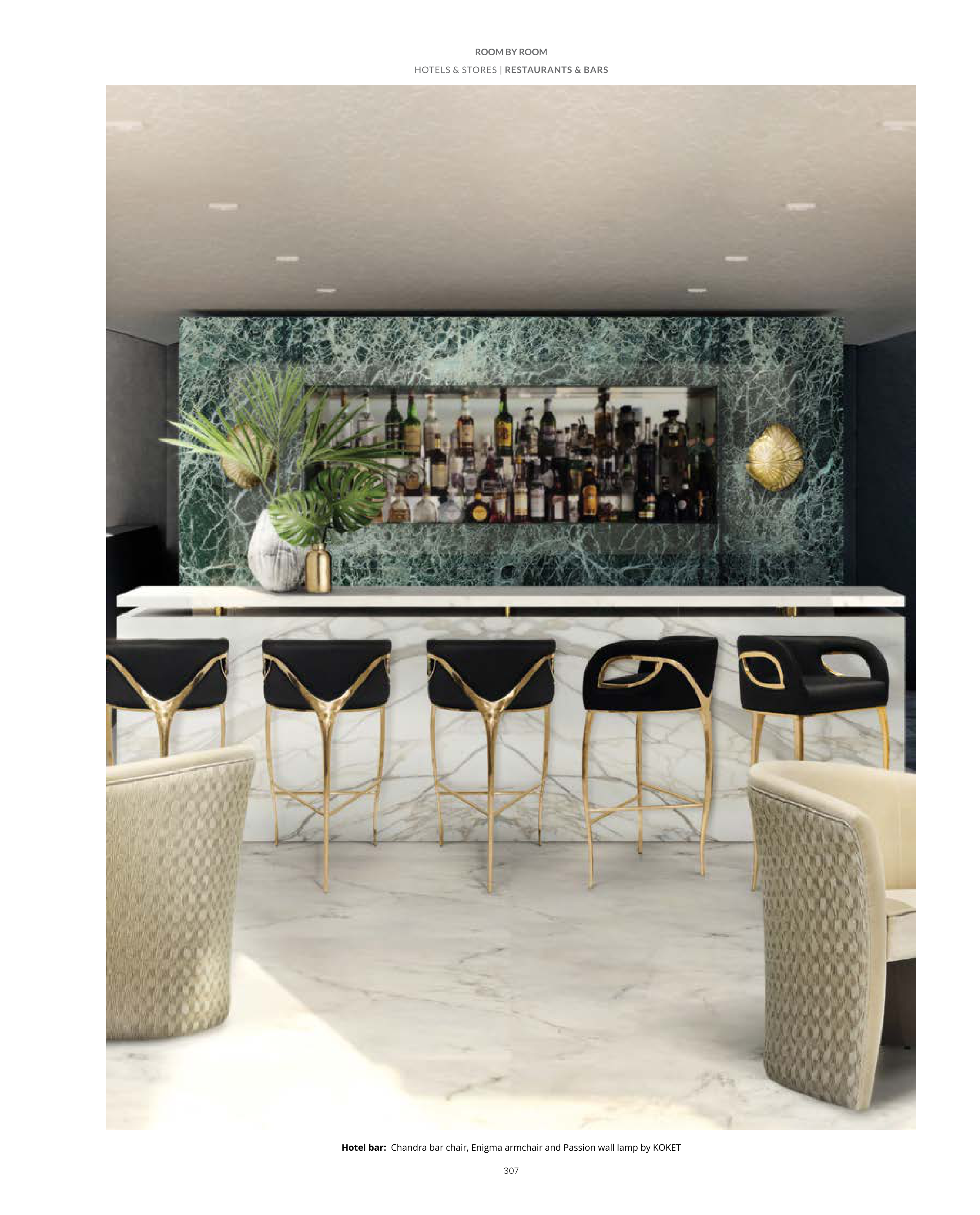 Hotel bar: Chandra bar chair, Enigma armchair and Passion wall lamp by KOKET