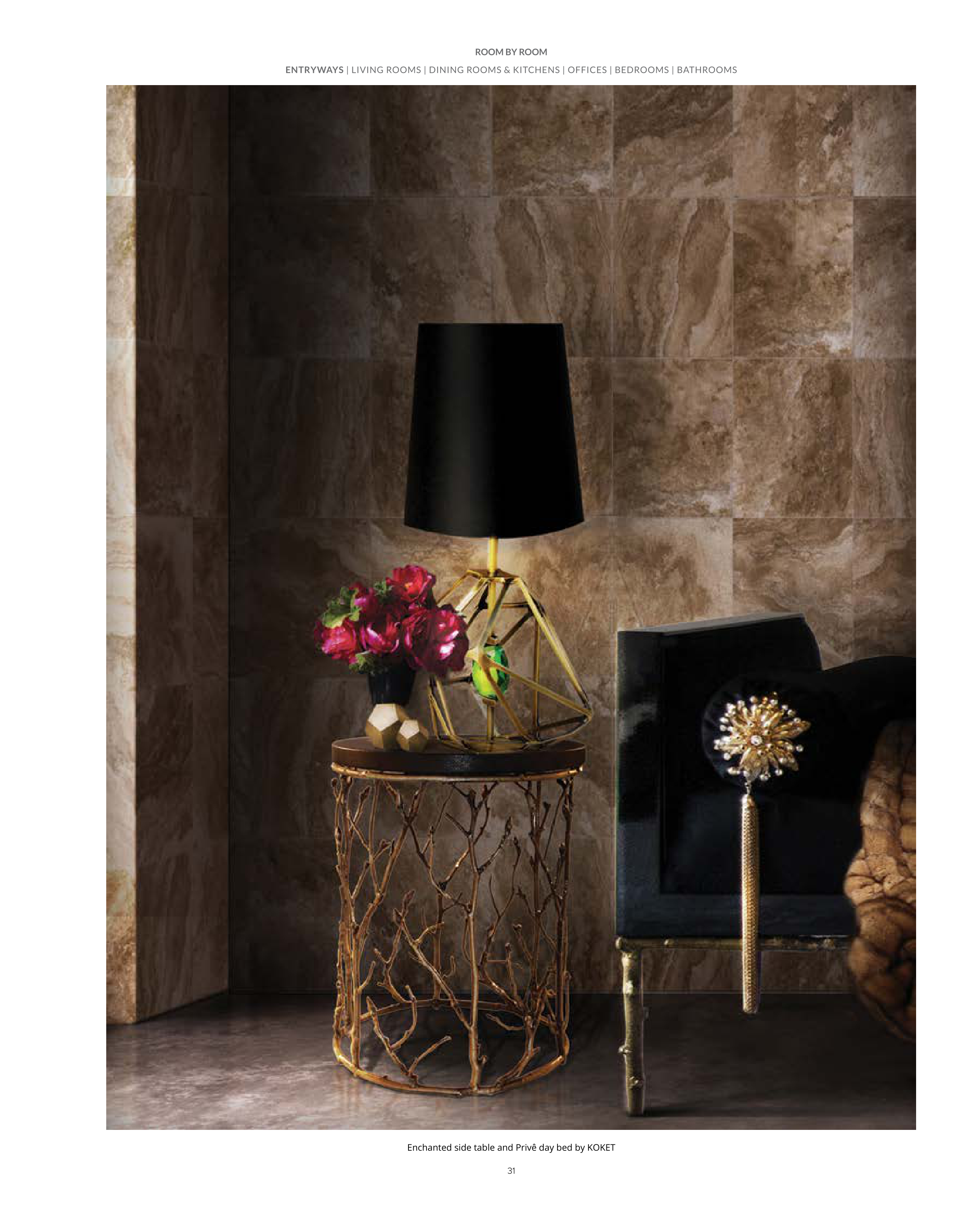 Enchanted side table and Privê day bed by KOKET
