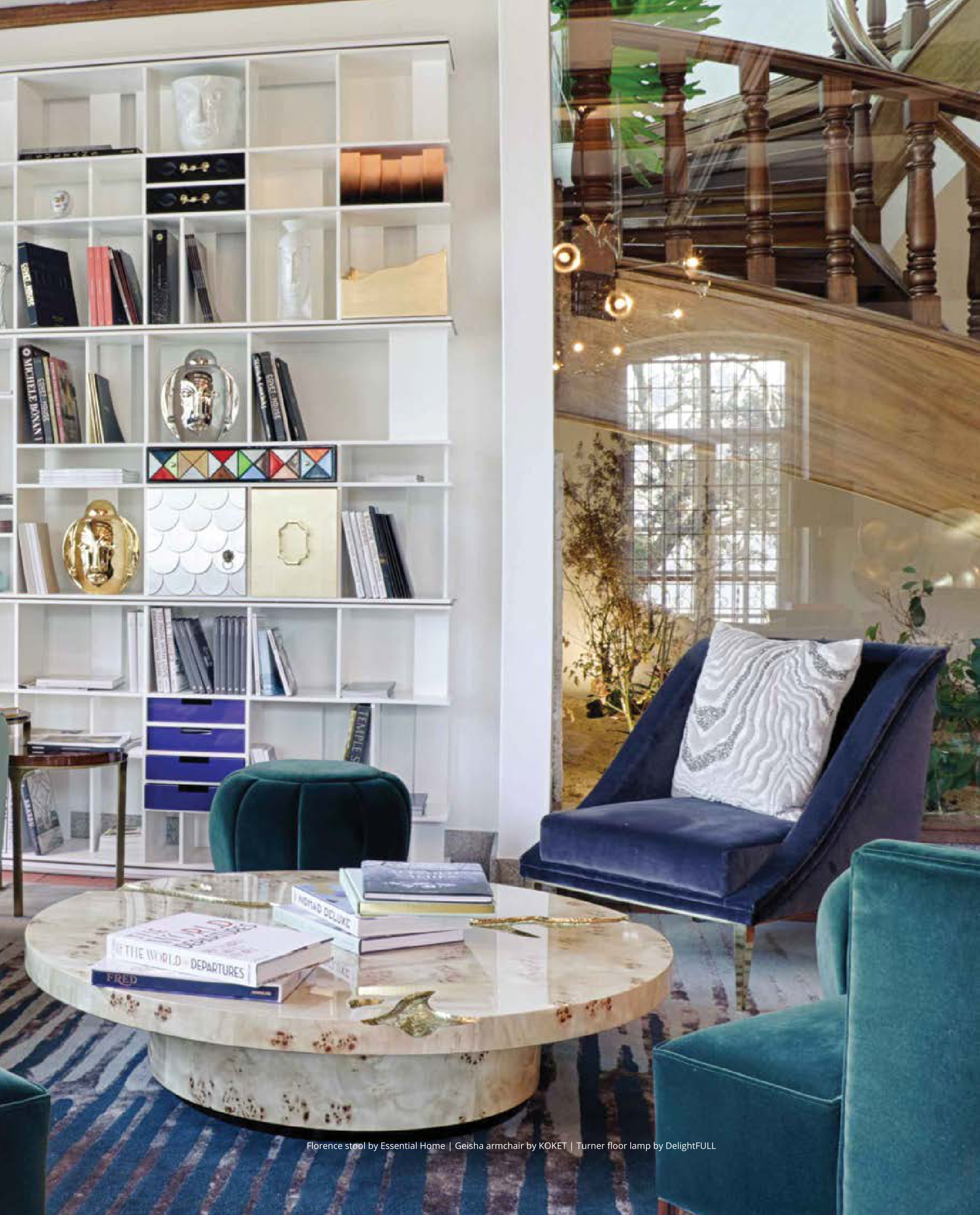 Florence stool by Essential Home | Geisha armchair by KOKET | Turner floor lamp by DelightFULL