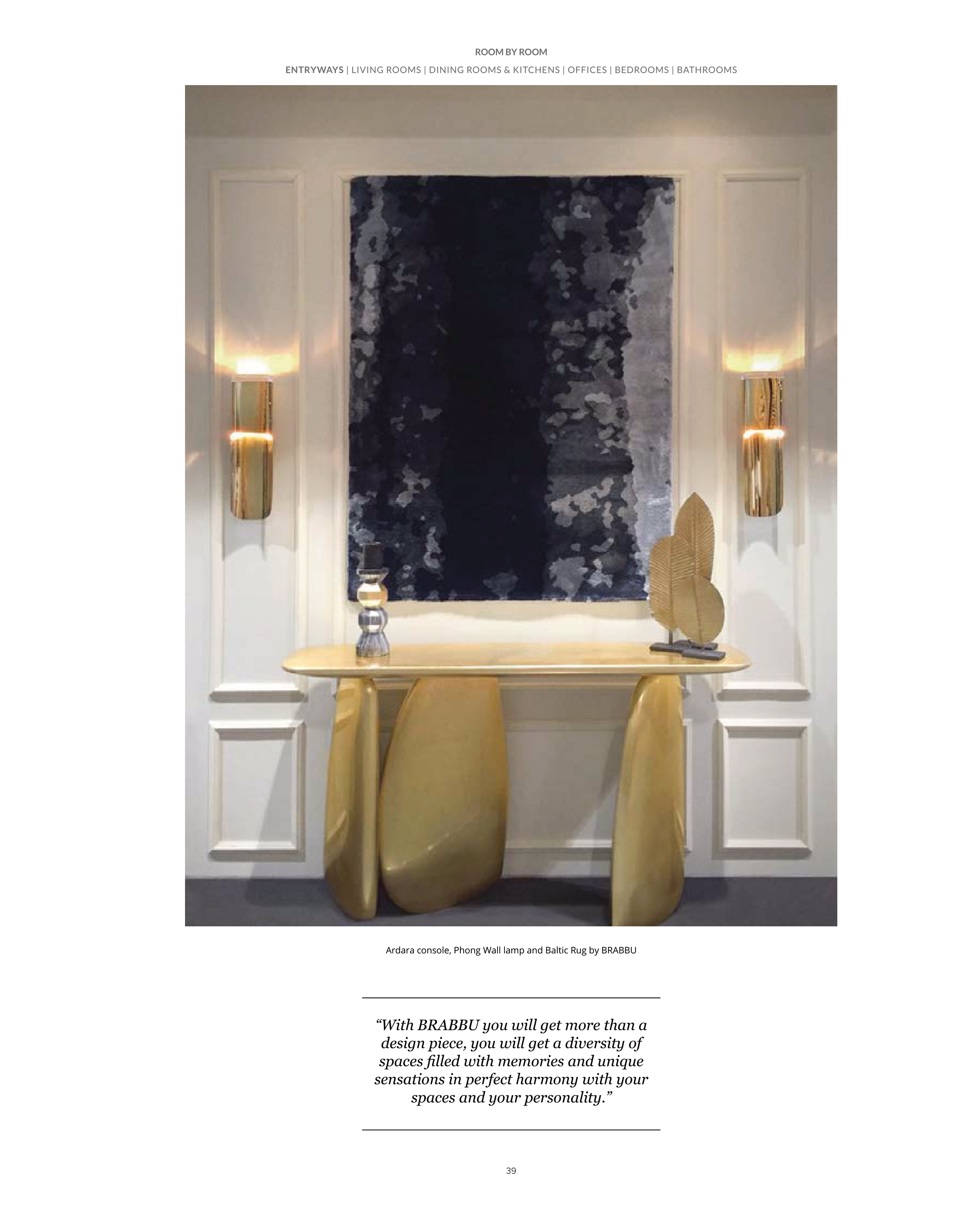 Ardara console, Phong Wall lamp and Baltic Rug by BRABBU