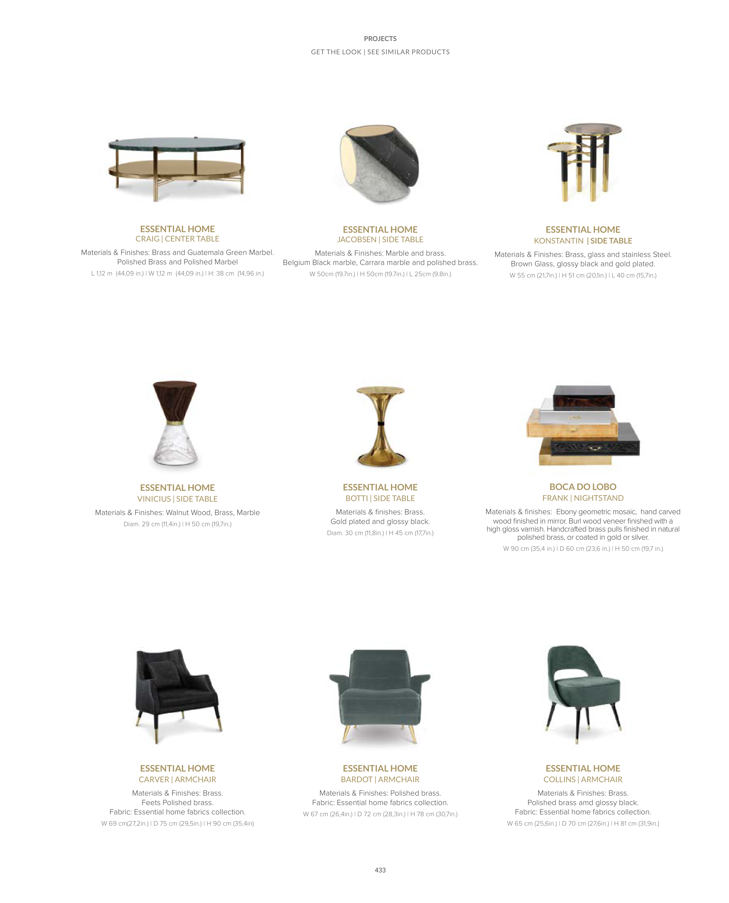 Materials & Finishes: Walnut Wood, Brass, Marble