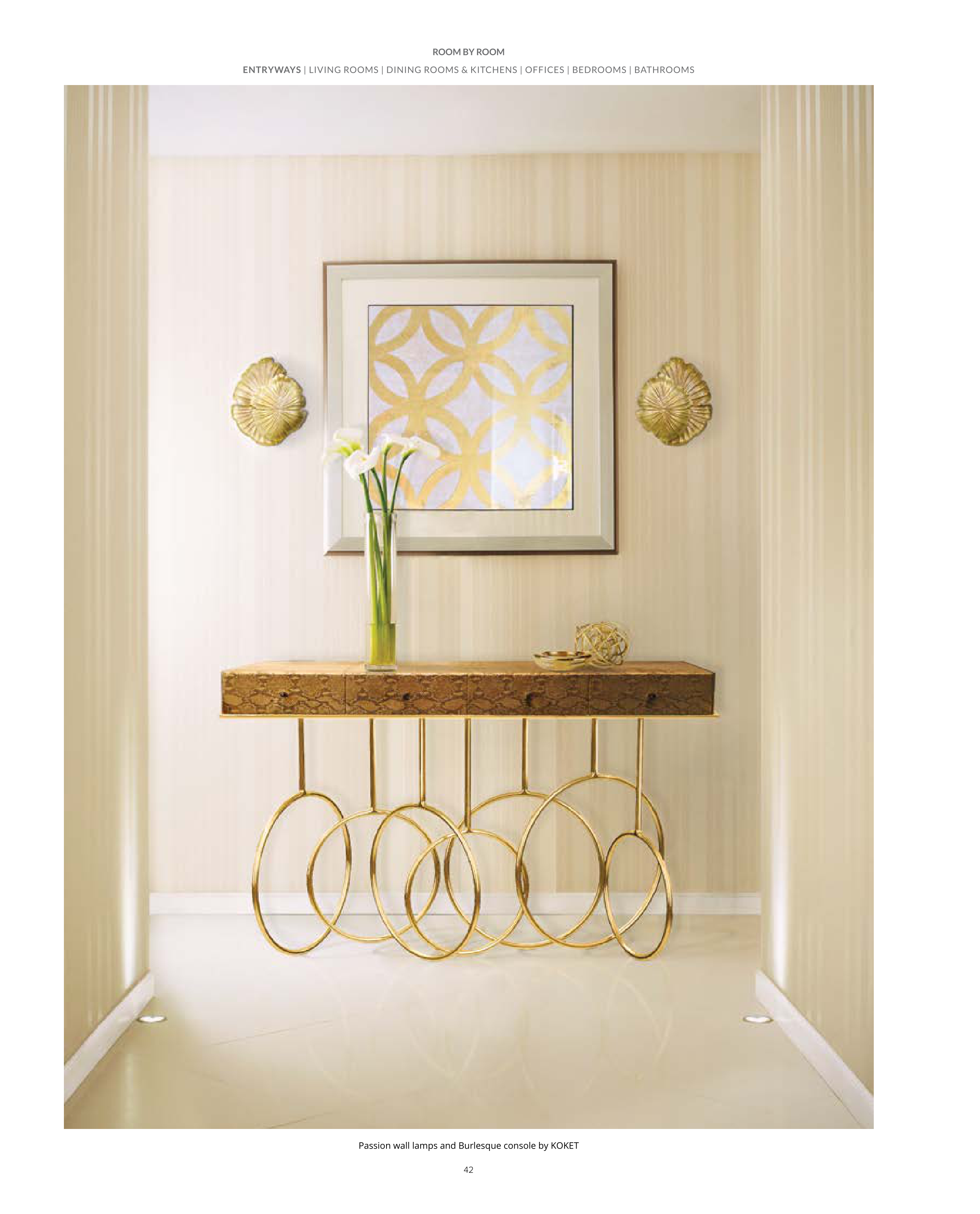 Passion wall lamps and Burlesque console by KOKET