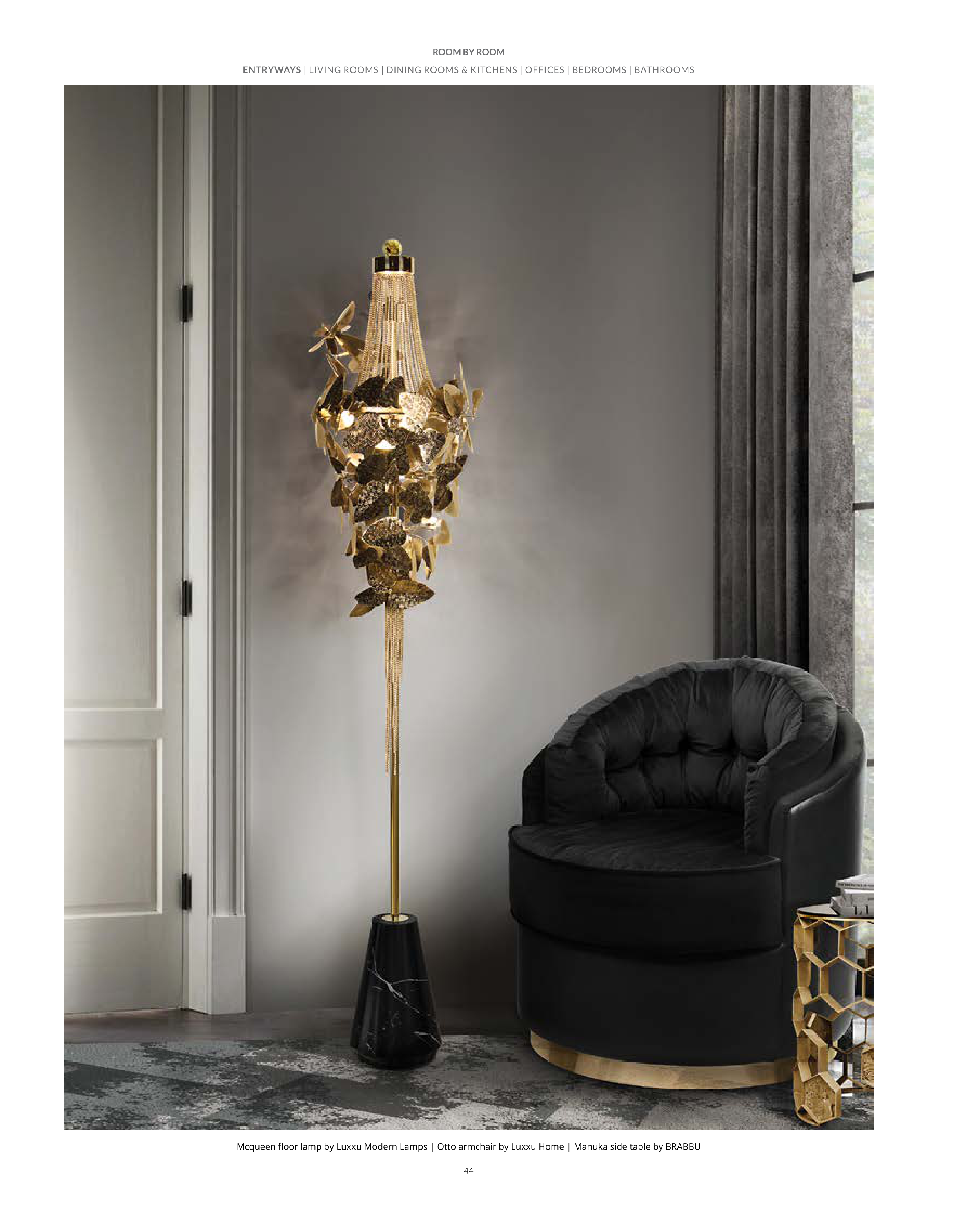 44 Mcqueen floor lamp by Luxxu Modern Lamps | Otto armchair by Luxxu Home | Manuka side table by BRABBU ENTRYWAYS | LIVING ROOMS | DINING ROOMS & KITCHENS | OFFICES | BEDROOMS | BATHROOMS ROOM BY ROOM