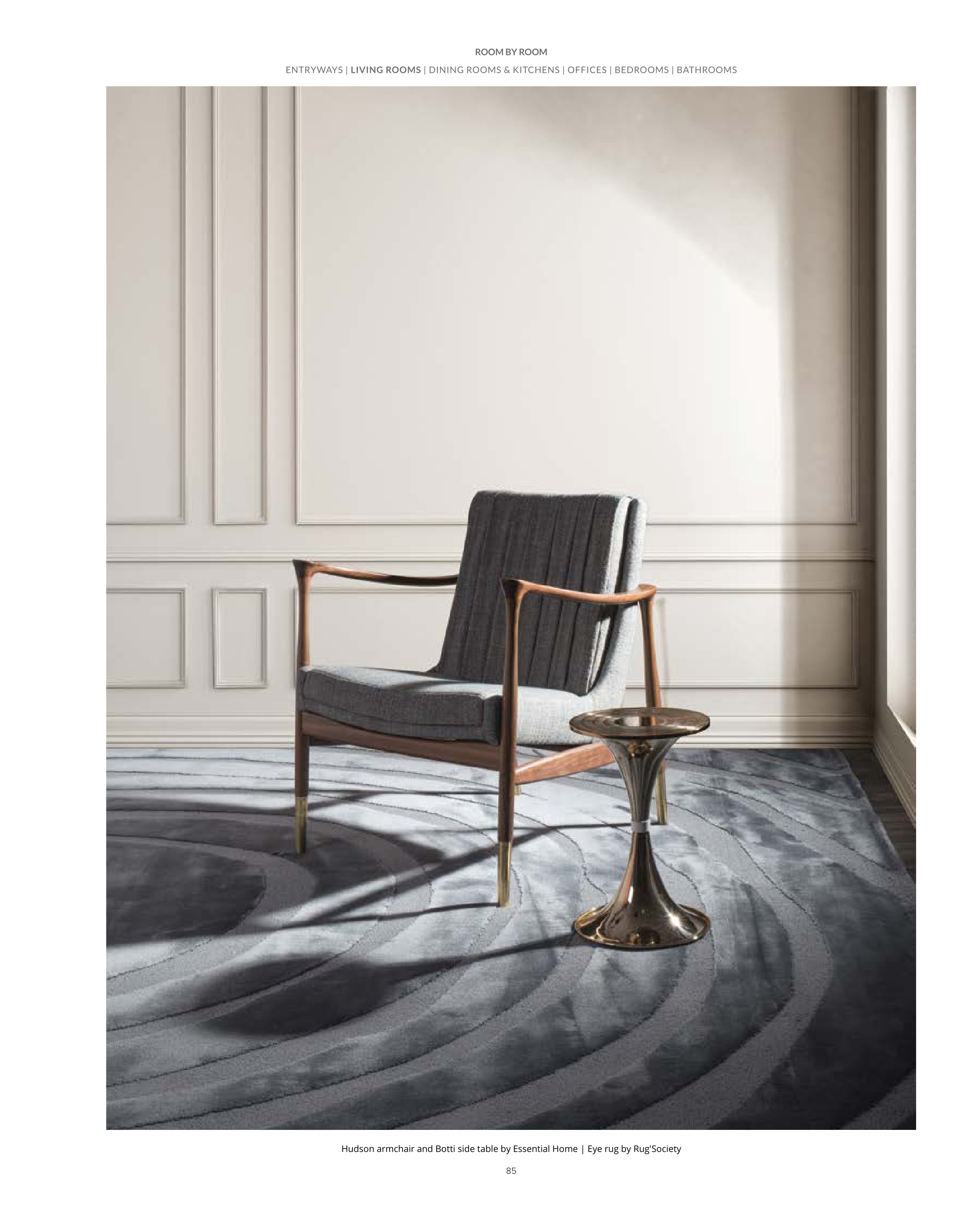 85 Hudson armchair and Botti side table by Essential Home | Eye rug by Rug'Society ENTRYWAYS | LIVING ROOMS | DINING ROOMS & KITCHENS | OFFICES | BEDROOMS | BATHROOMS ROOM BY ROOM
