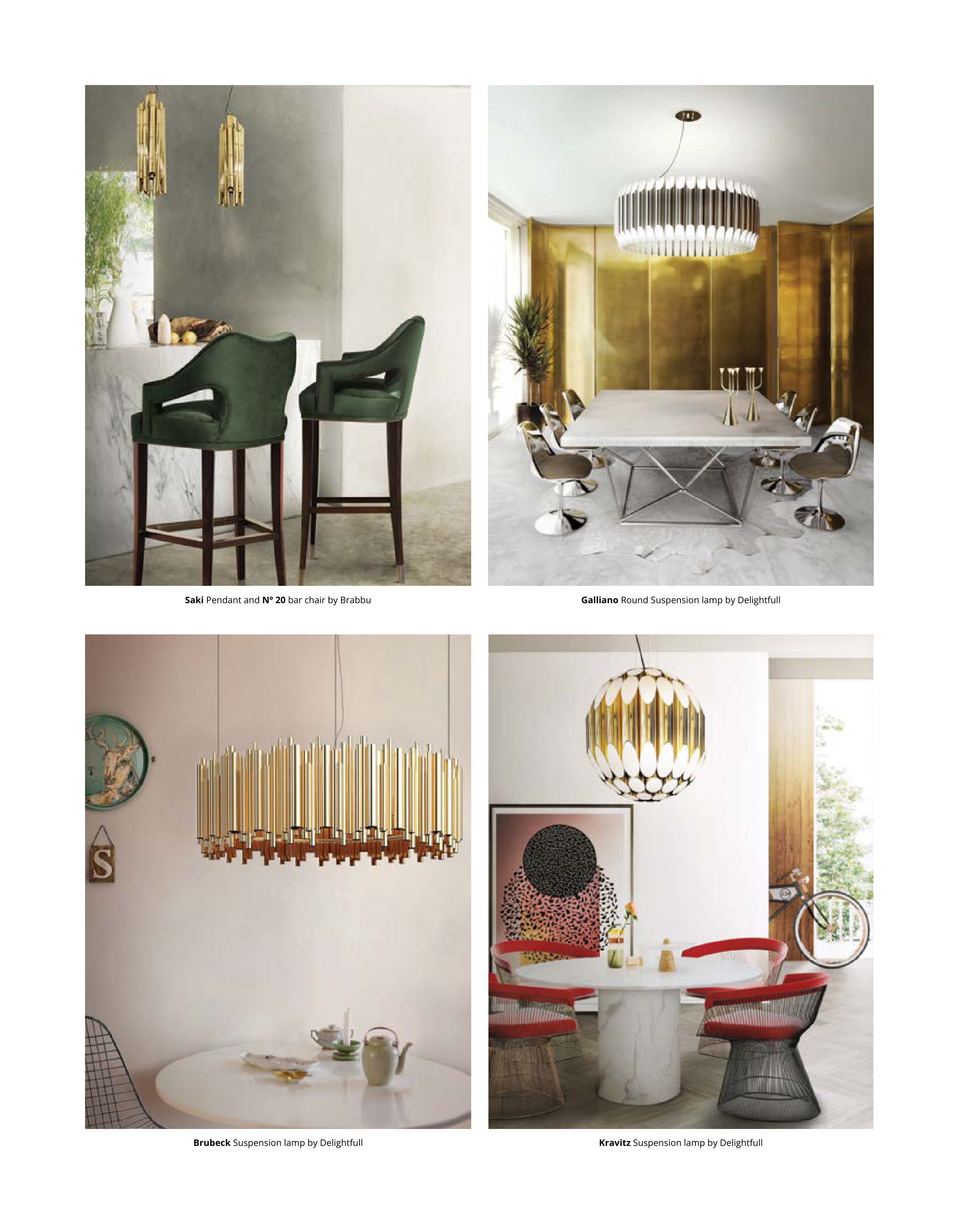 Galliano Round Suspension lamp by Delightfull Saki Pendant and Nº 20 bar chair by Brabbu Kravitz Suspension lamp by Delightfull Brubeck Suspension lamp by Delightfull