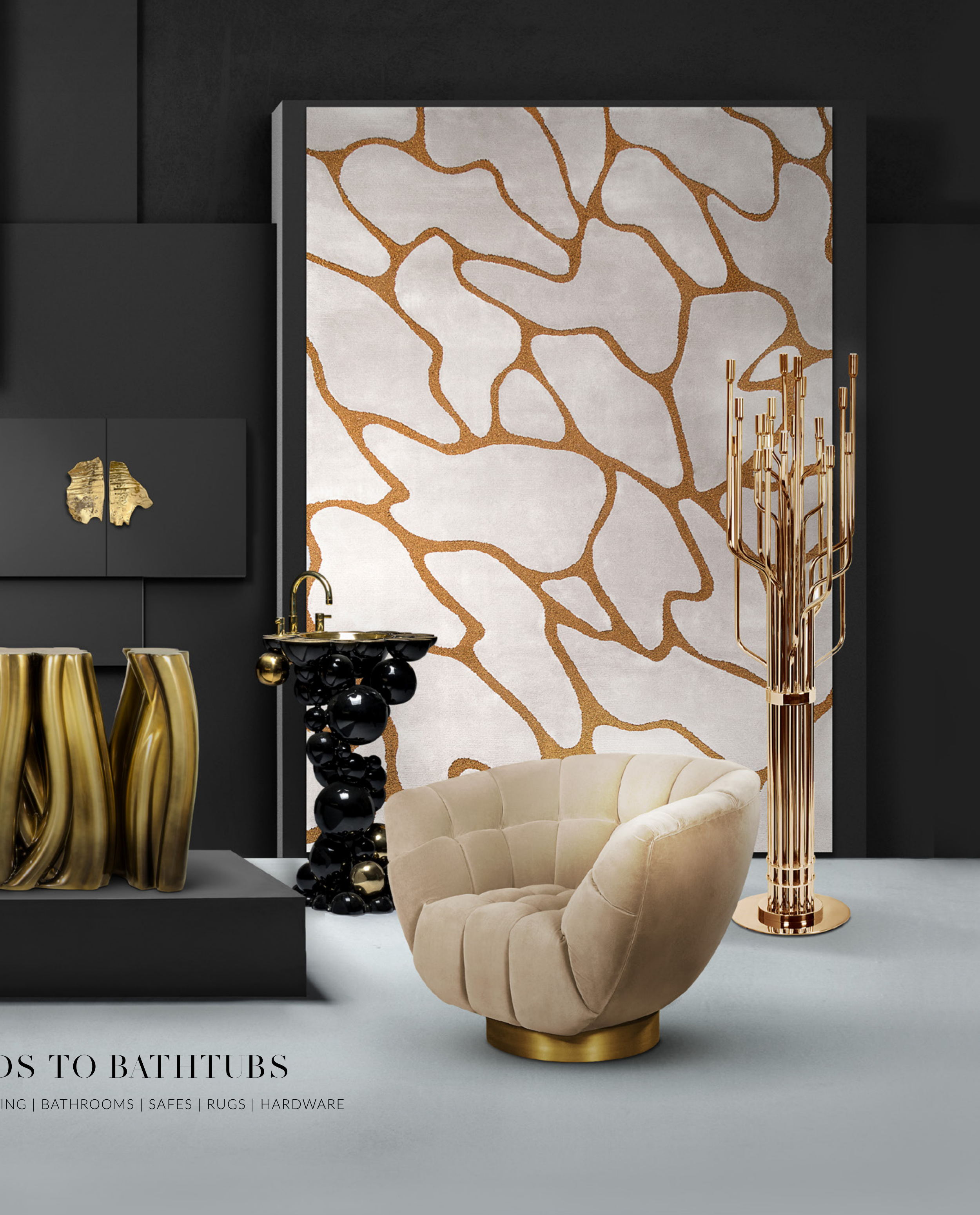 CASEGOODS | TABLES | SEATING | BEDS | LIGHTING | BATHROOMS | SAFES | RUGS | HARDWARE