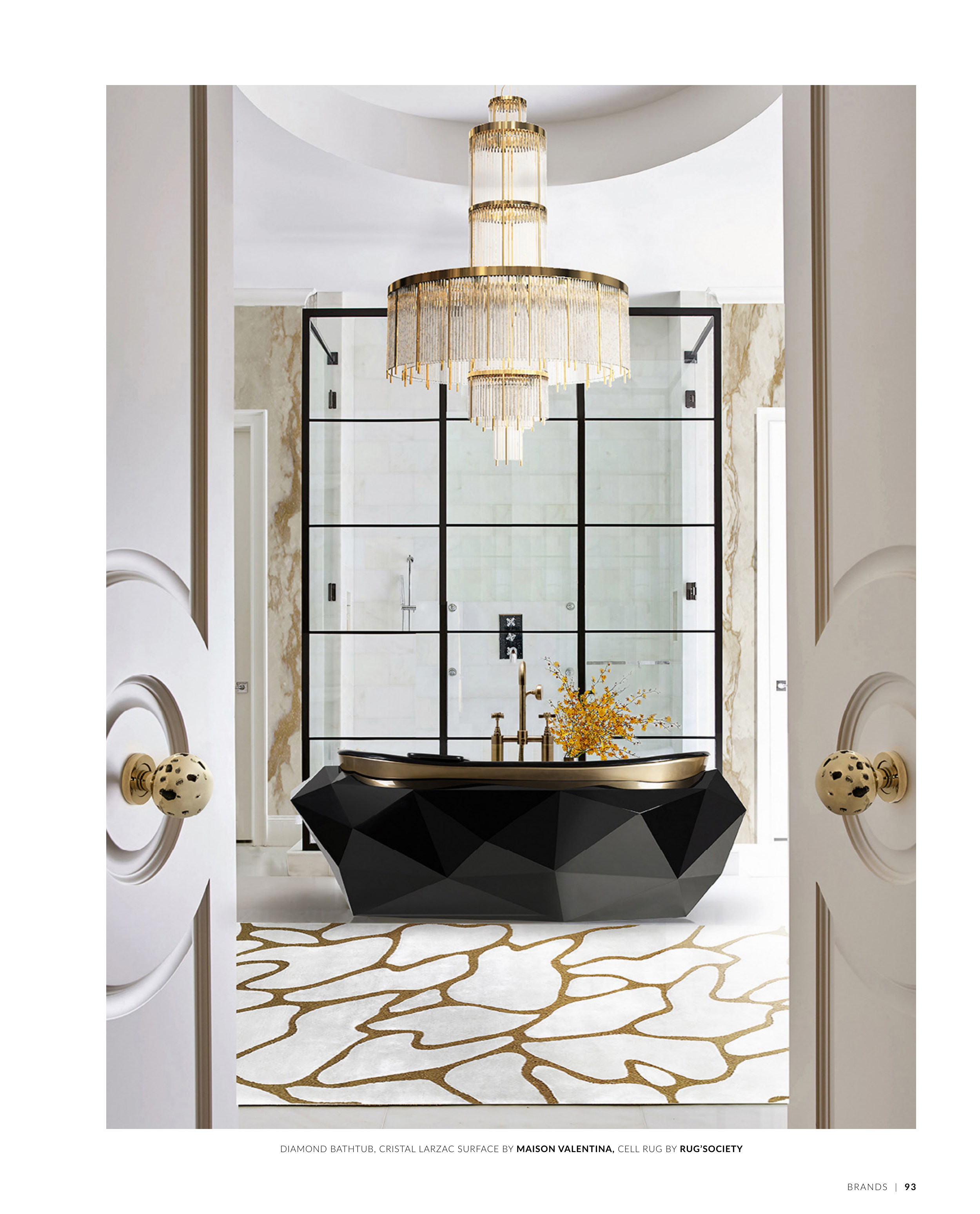DIAMOND BATHTUB, CRISTAL LARZAC SURFACE BY MAISON VALENTINA, CELL RUG BY RUG’SOCIETY