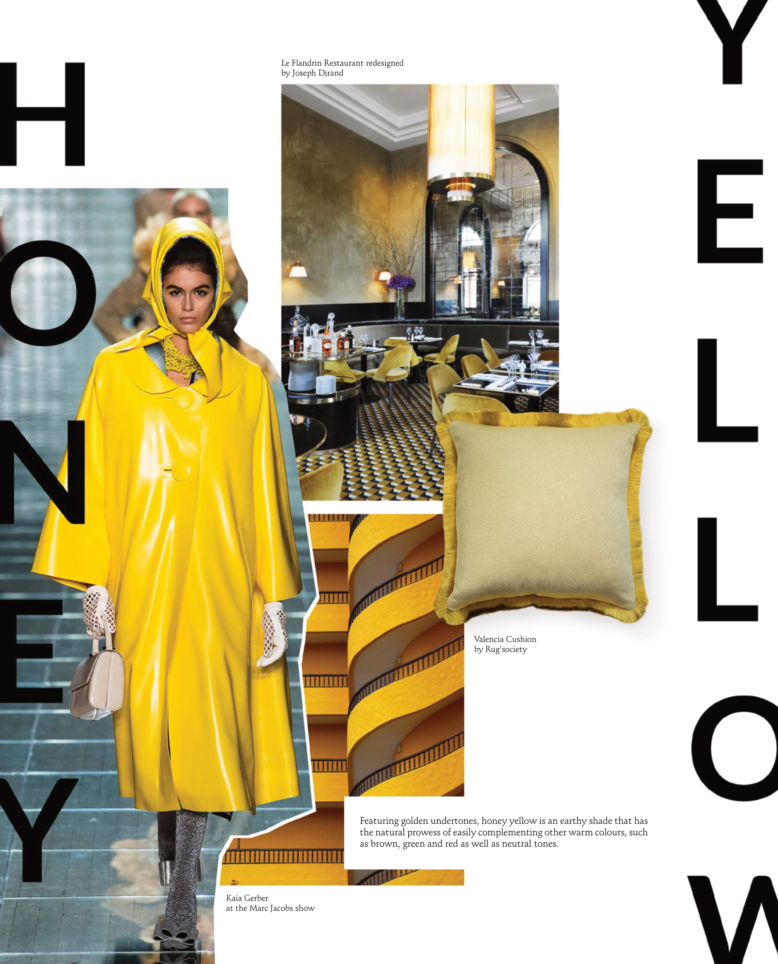 Featuring golden undertones, honey yellow is an earthy shade that has