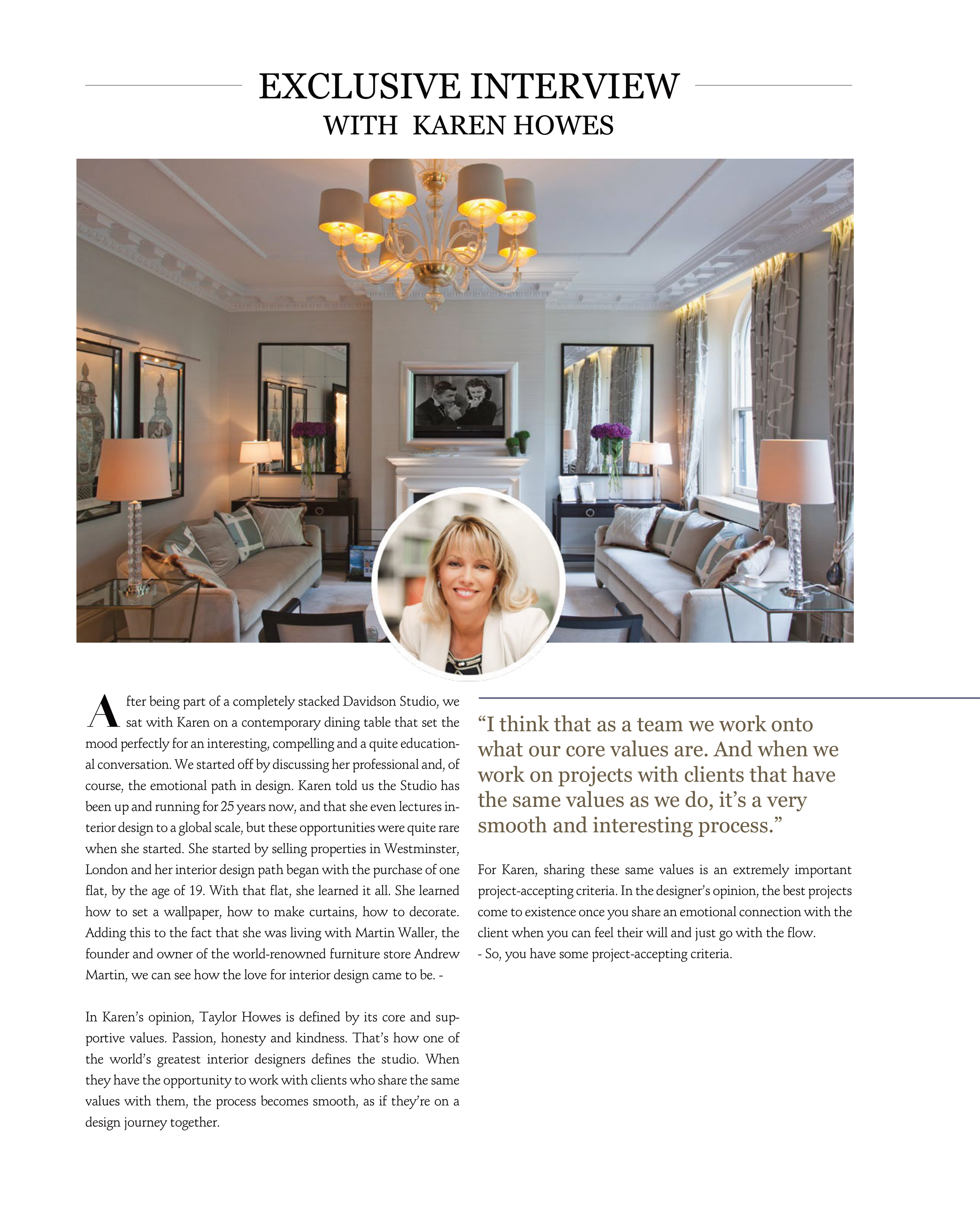 In Karen’s opinion, Taylor Howes is defined by its core and sup-