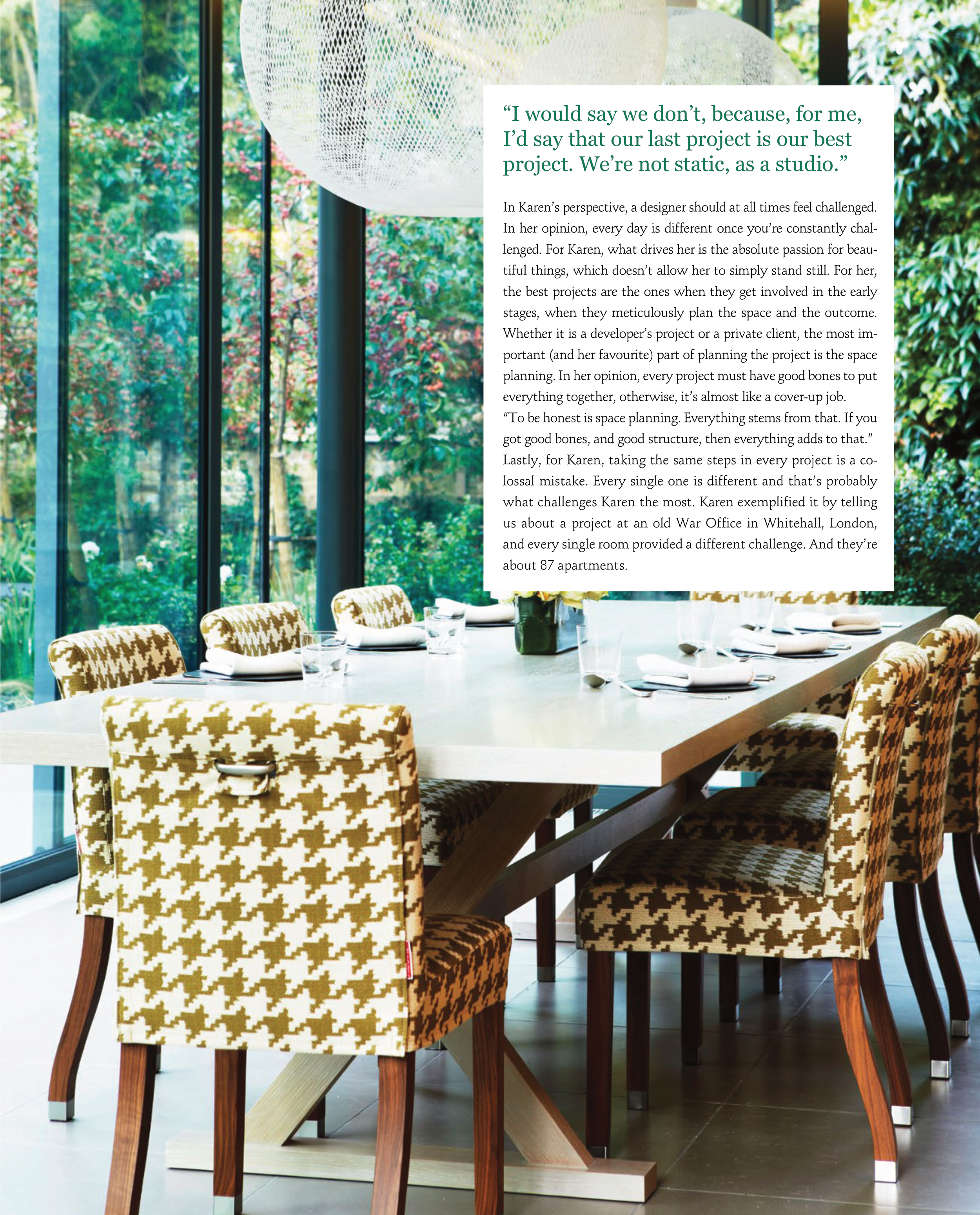 In Karen’s perspective, a designer should at all times feel challenged.
