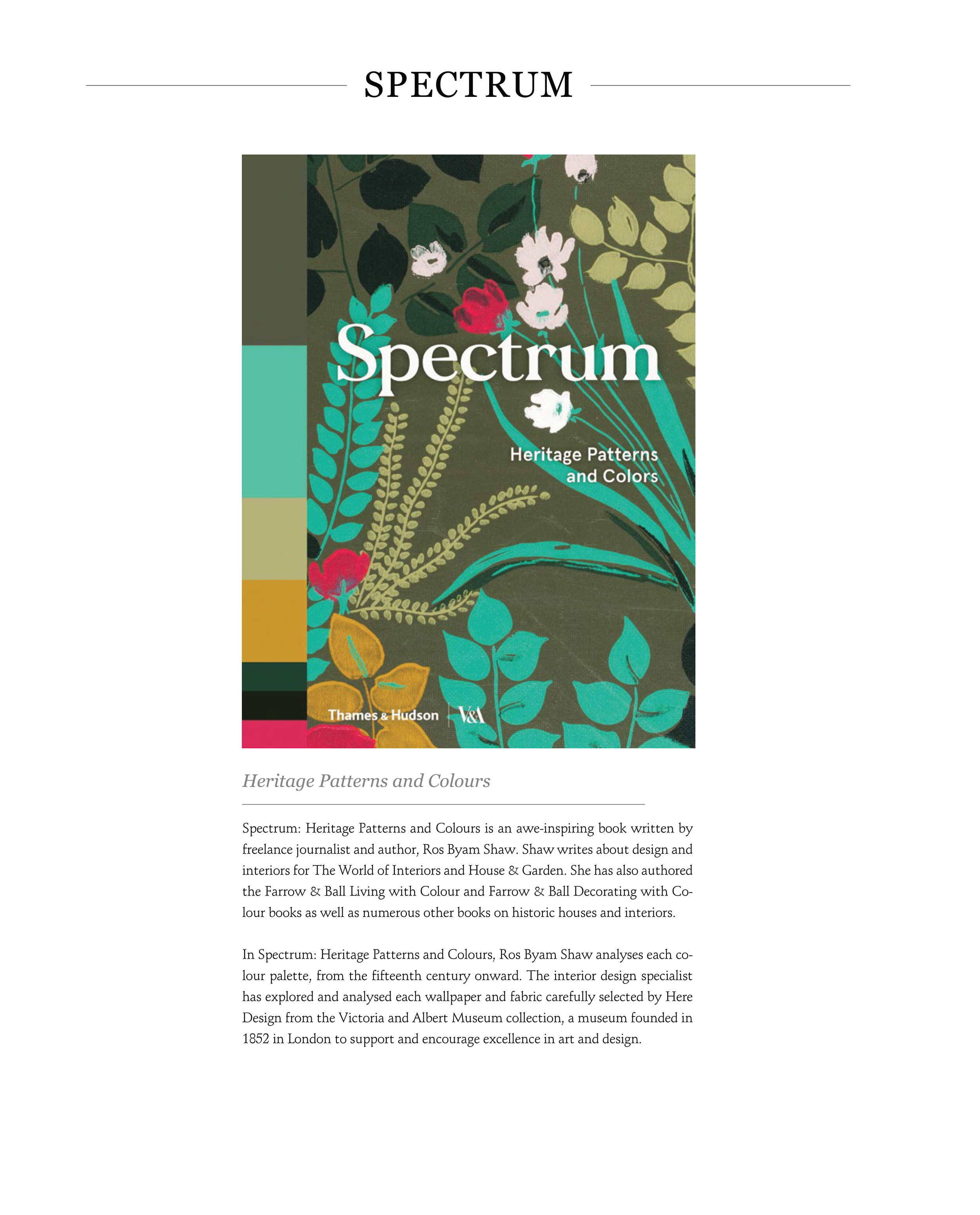 Spectrum: Heritage Patterns and Colours is an awe-inspiring book written by