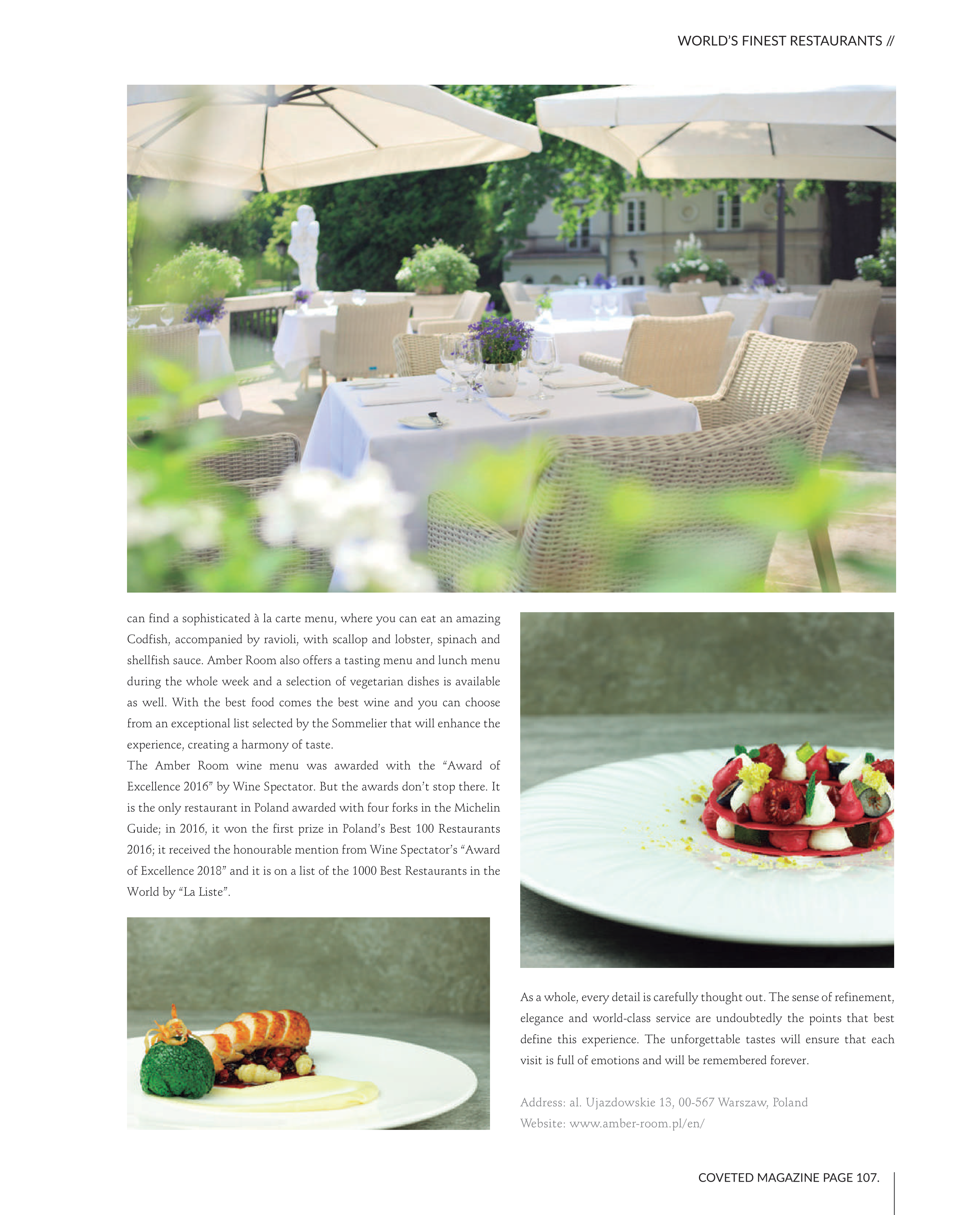 Guide; in 2016, it won the first prize in Poland’s Best 100 Restaurants
