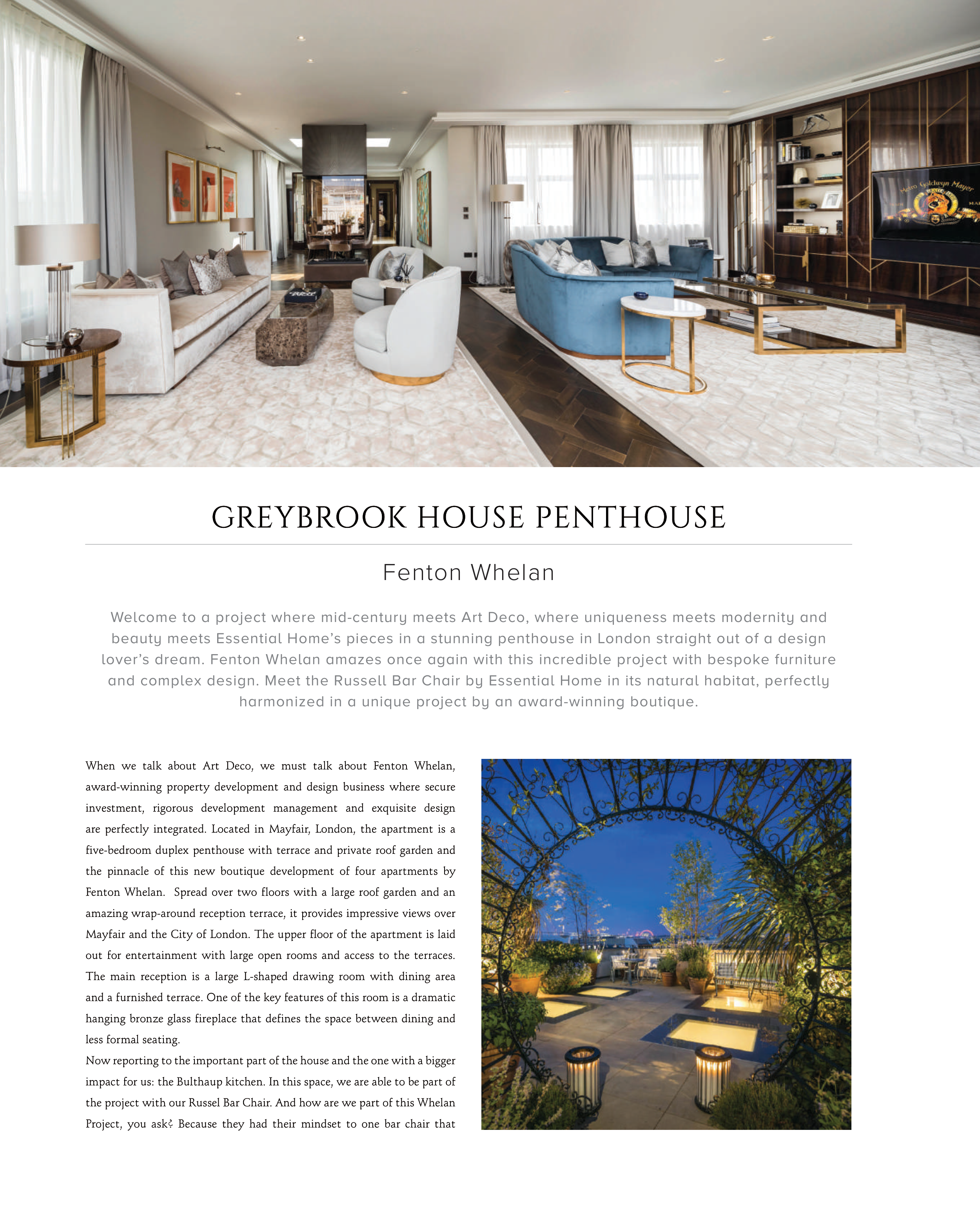 Fenton Whelan. Spread over two floors with a large roof garden and an