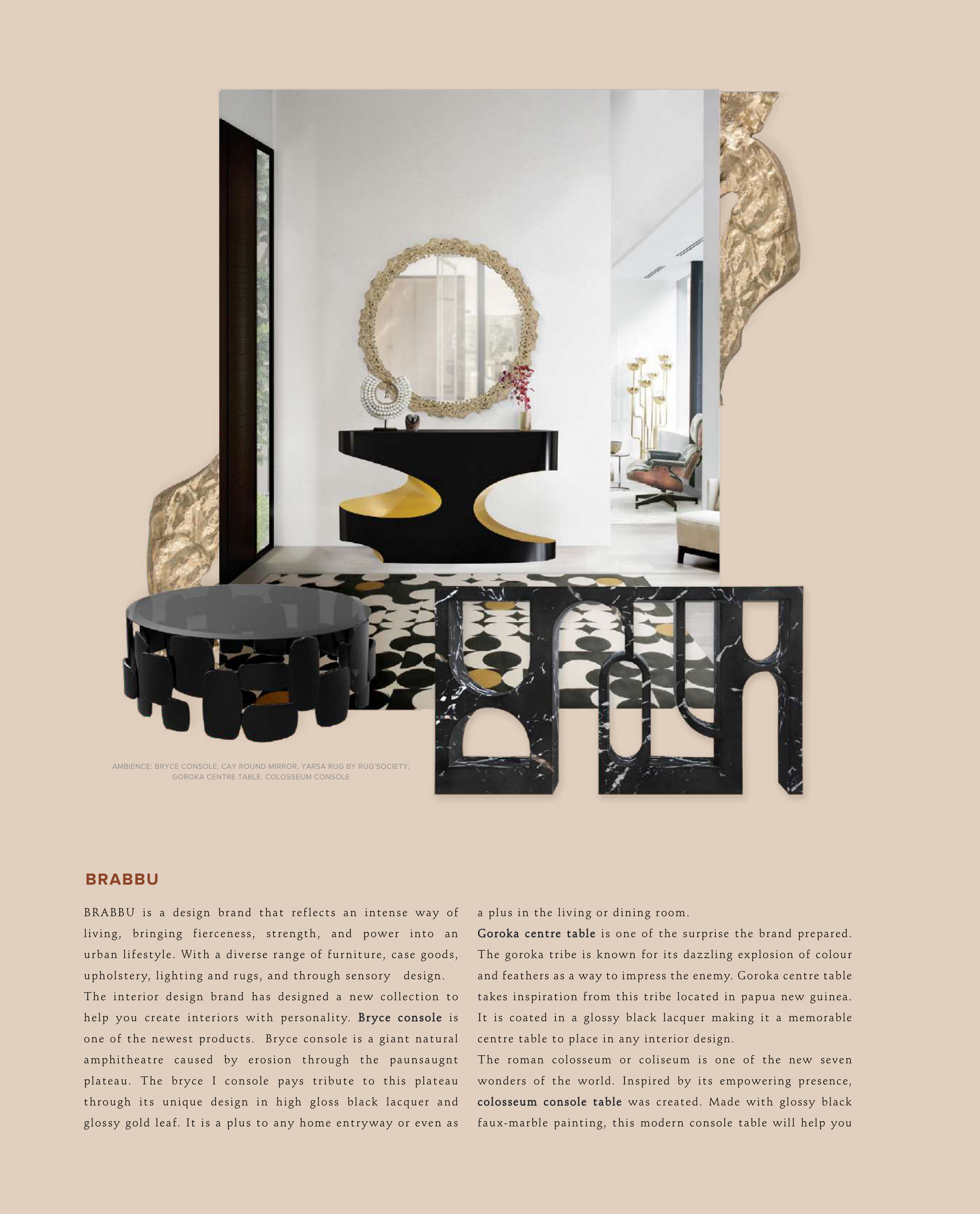 AMBIENCE: BRYCE CONSOLE, CAY ROUND MIRROR, YARSA RUG BY RUG’SOCIETY;