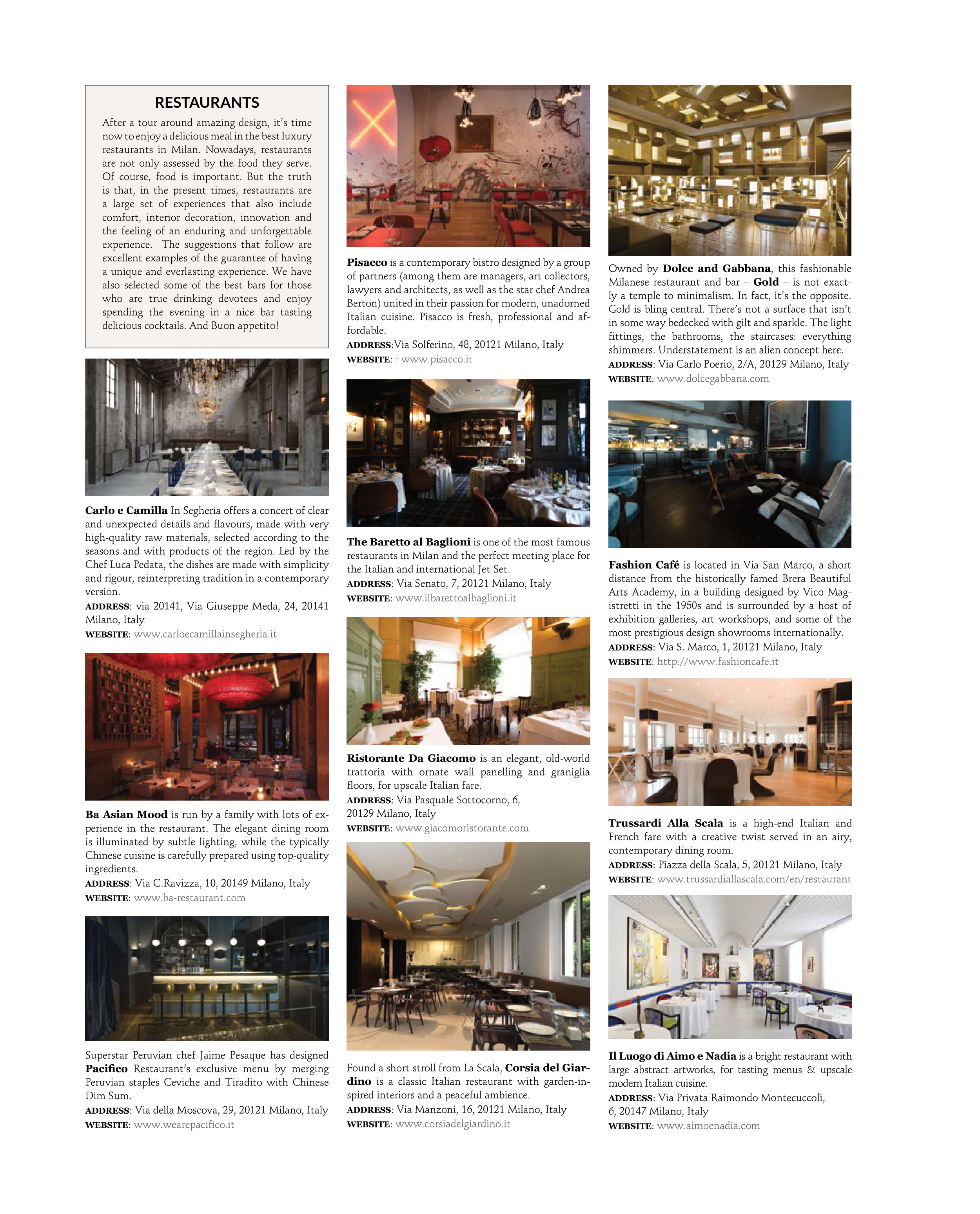 restaurants in Milan. Nowadays, restaurants