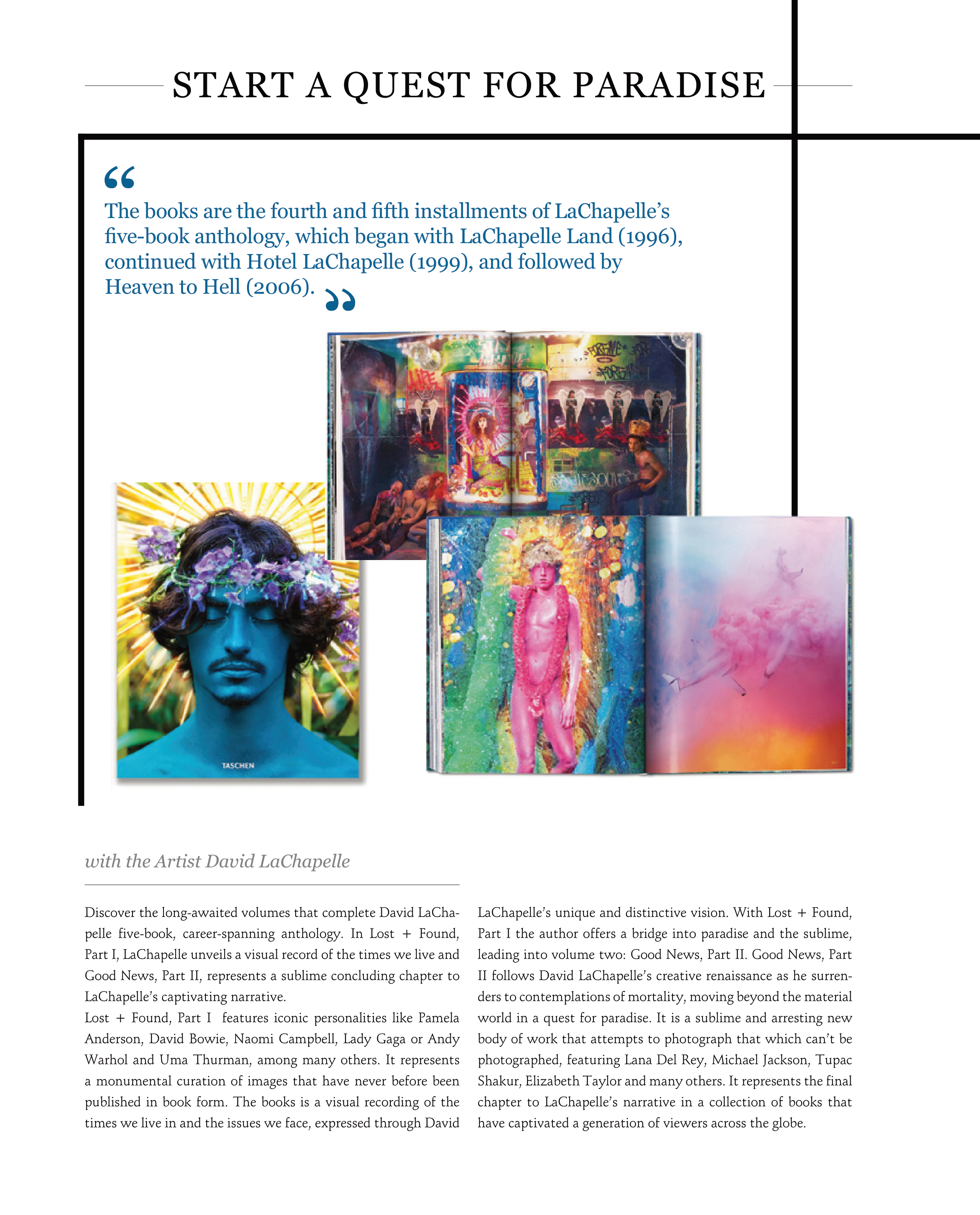 LaChapelle’s unique and distinctive vision. With Lost + Found,